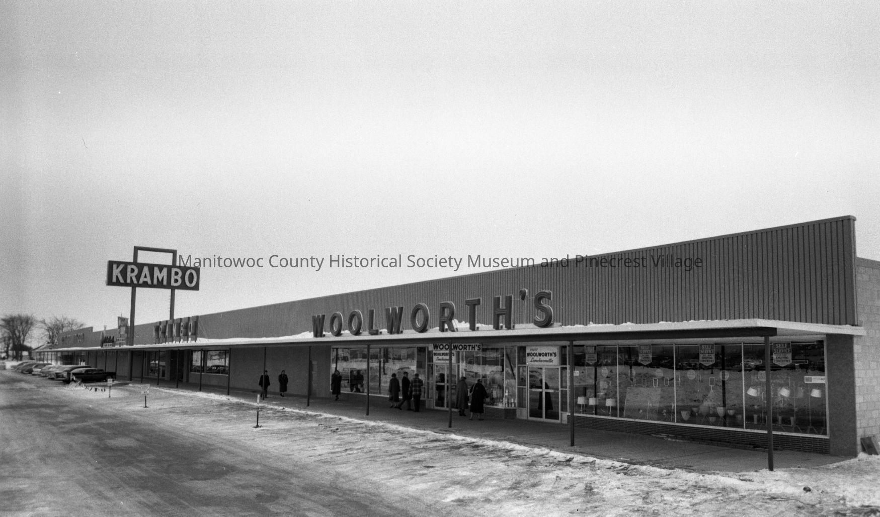 Woolworth store and Krambo Super Market at Park Plaza, 1100 South 30th Street Manitowoc. Photograph taken on Febraury 15th, 1959.Made/Created