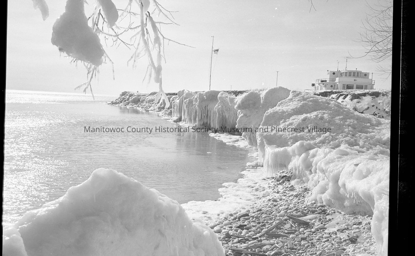 Yacht Club, 815 Maritime Drive Manitowoc, looking south near Little Manitowoc river bridge. Photograph taken on February 17th, 1973.Made/Created