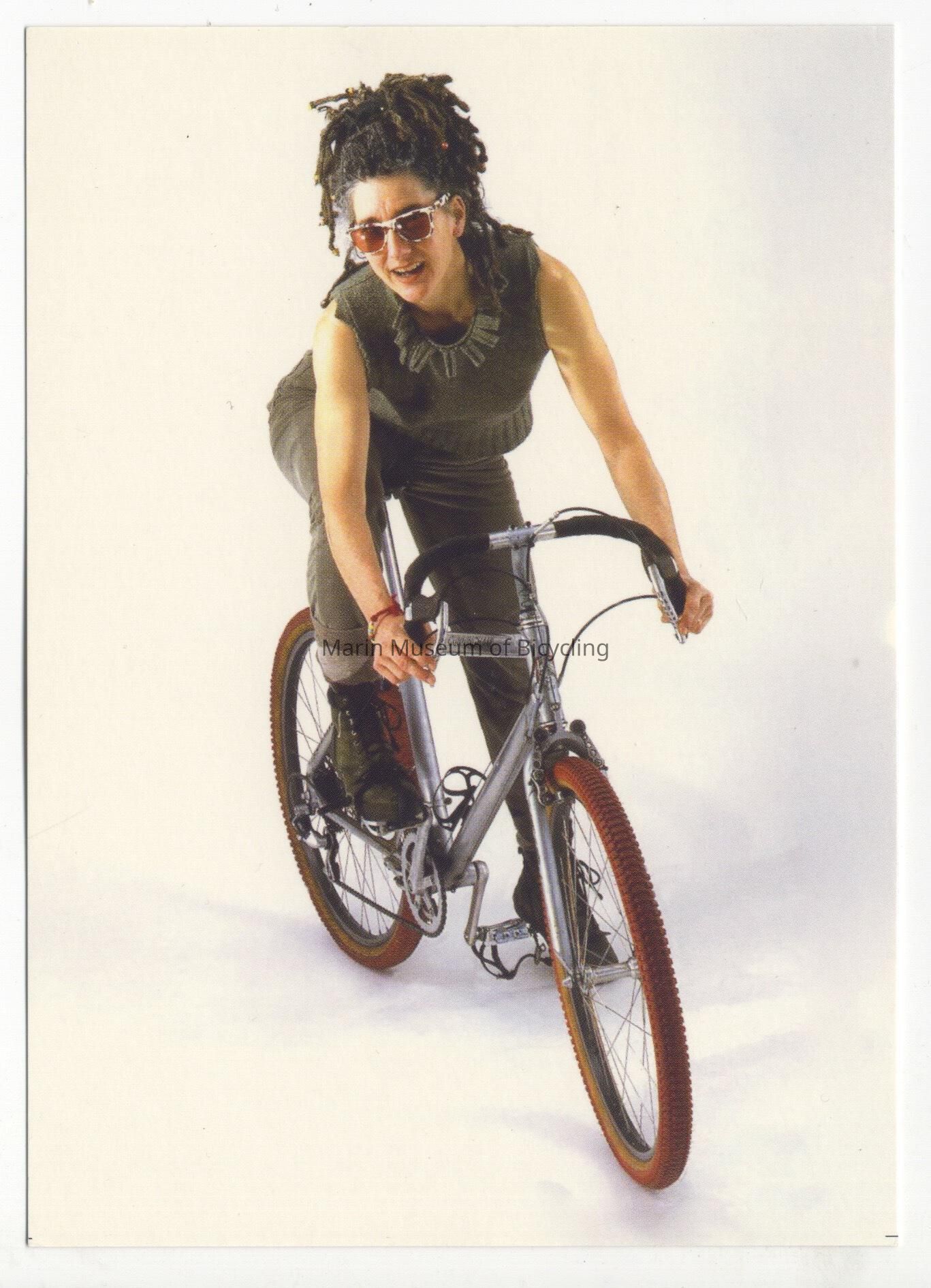 Jacquie Phelan on her bike "Otto," which is featured in the book. Otto is on display at Marin Museum of Bicycling.Acquisition