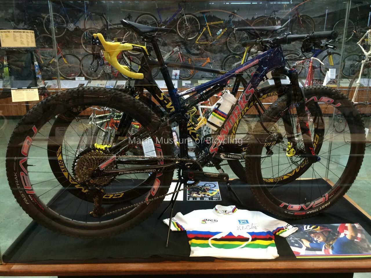 2018 World Championship Winner. This Specialized S- Works Epic was raced to gold by Kate Courtney in the Elite Women's Cross - Country Mountain Bike World Championships in Lenzerhedie, Switzerland, September 8, 2018. The "rainbow" stripes on Kate's white jersey, displayed with the bike, signify the World Champion.Acquisition