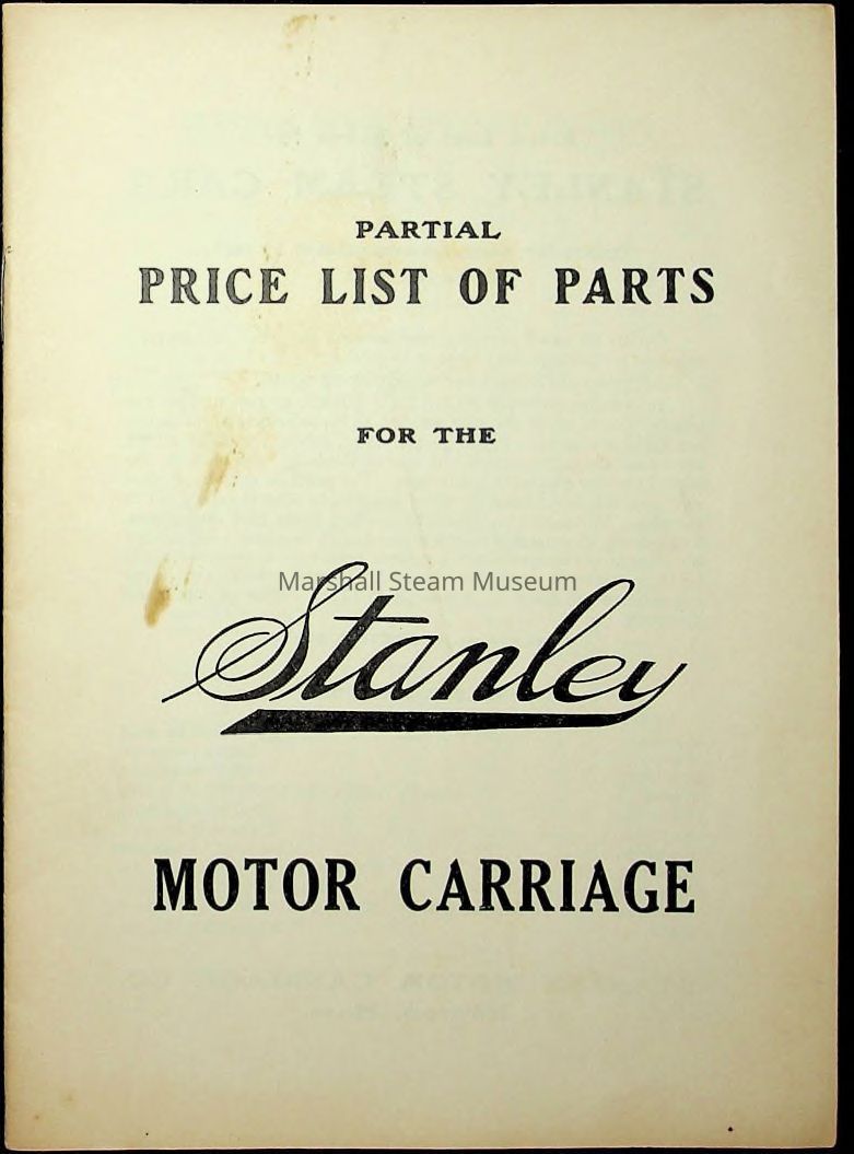 Undated price list of parts for Stanley Models B, C, EX, and F