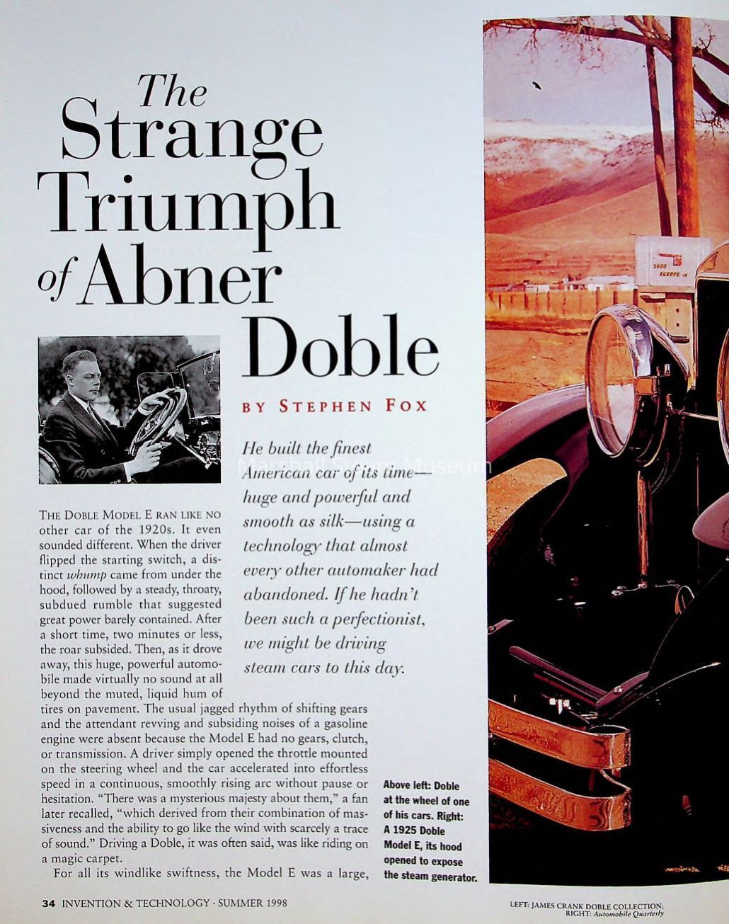 1998 article The Strange Triumph of Abner Doble in Invention and Technology Magazine