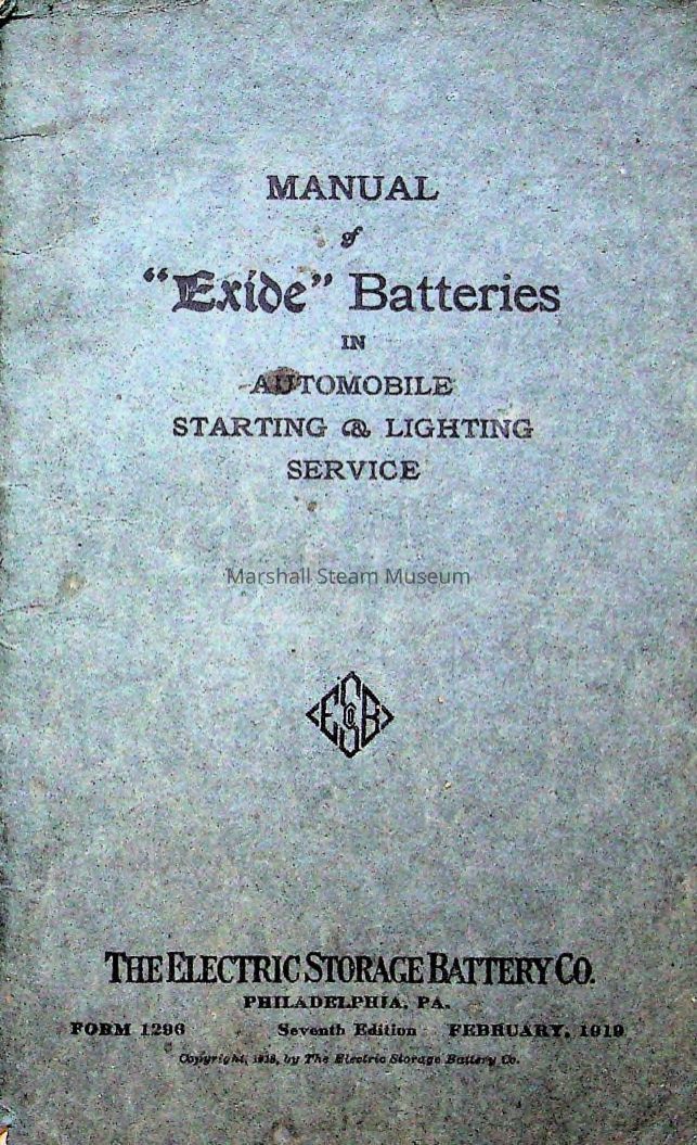 1919 Manual of Exide Batteries in Automotive Starting and Lighting Service