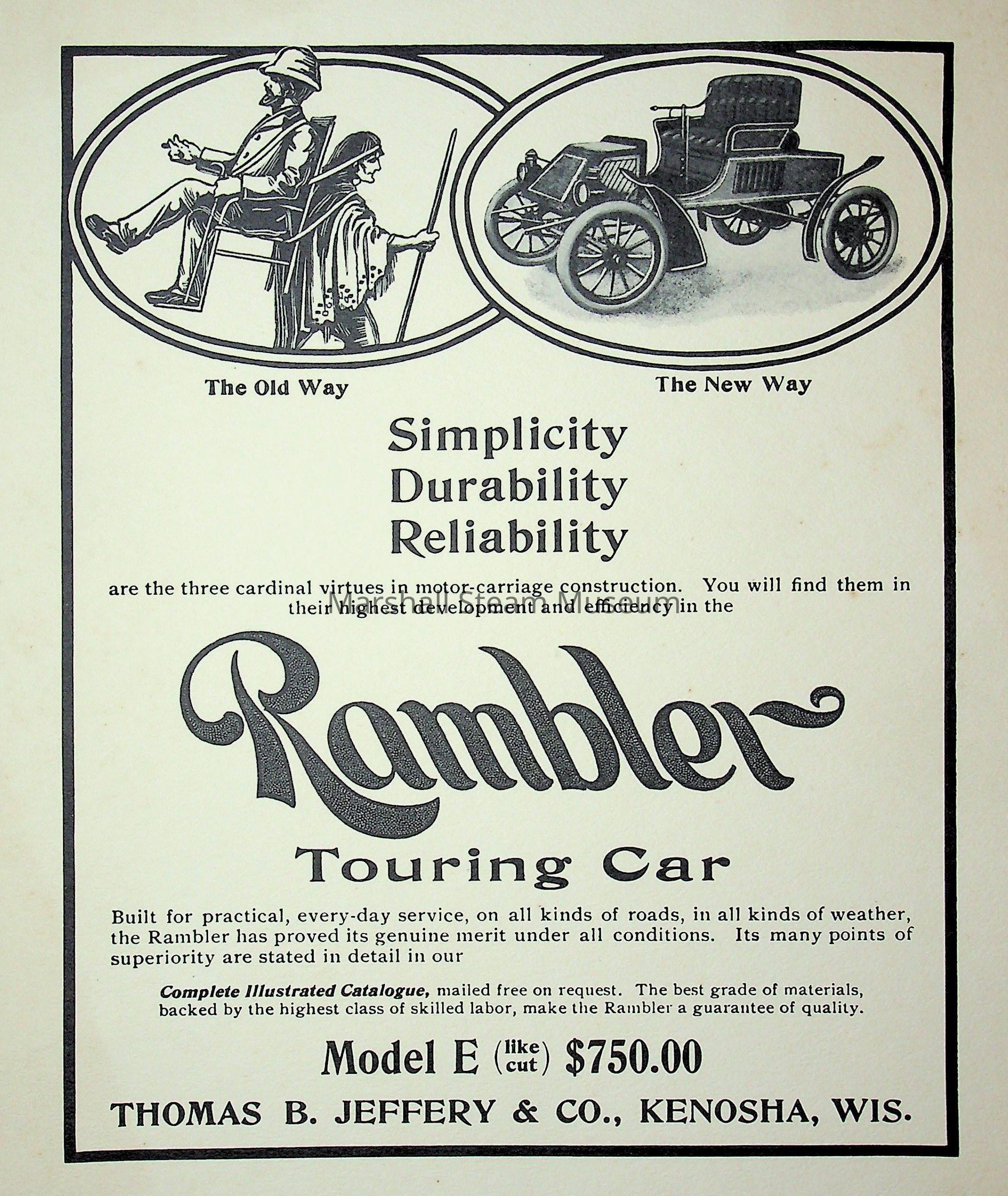 Reproduction of an advertisement for Rambler (built by Thomas B. Jeffery Company) that appeared in "The Saturday Evening Post" in 1903