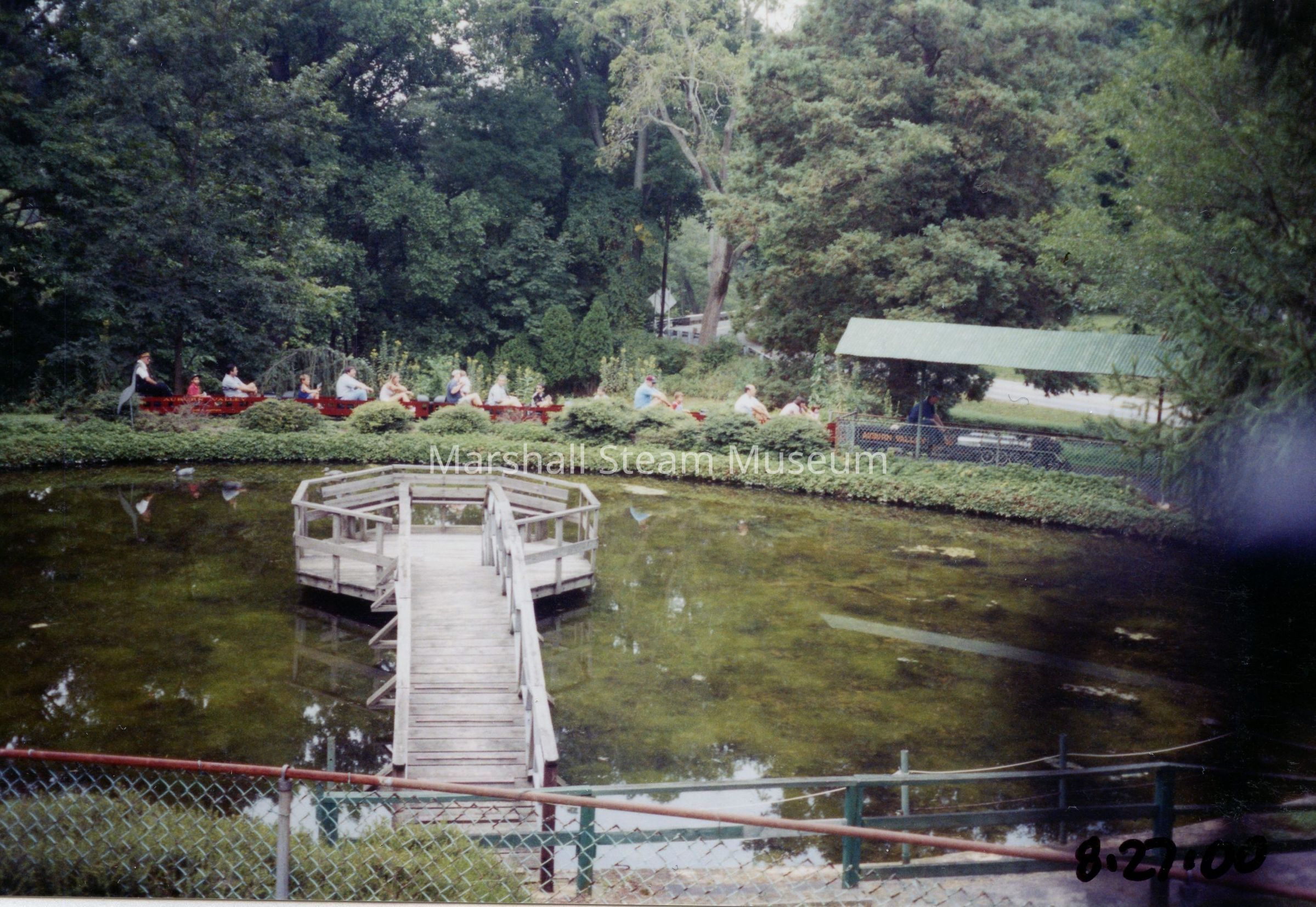 Guests riding the steam train near the pond at Auburn Valley Railroad Day on August 27, 2000.Photograph Details
