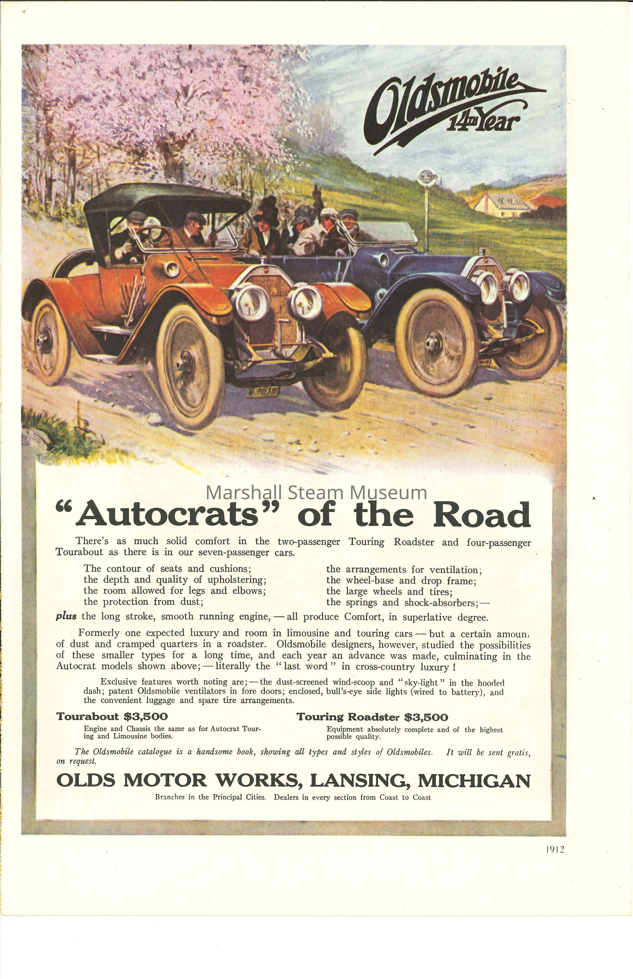 1912 advertisement for Olds Motor scanned excerpt from "The Poster Book of Antique Auto Ads" by Howard Garrett