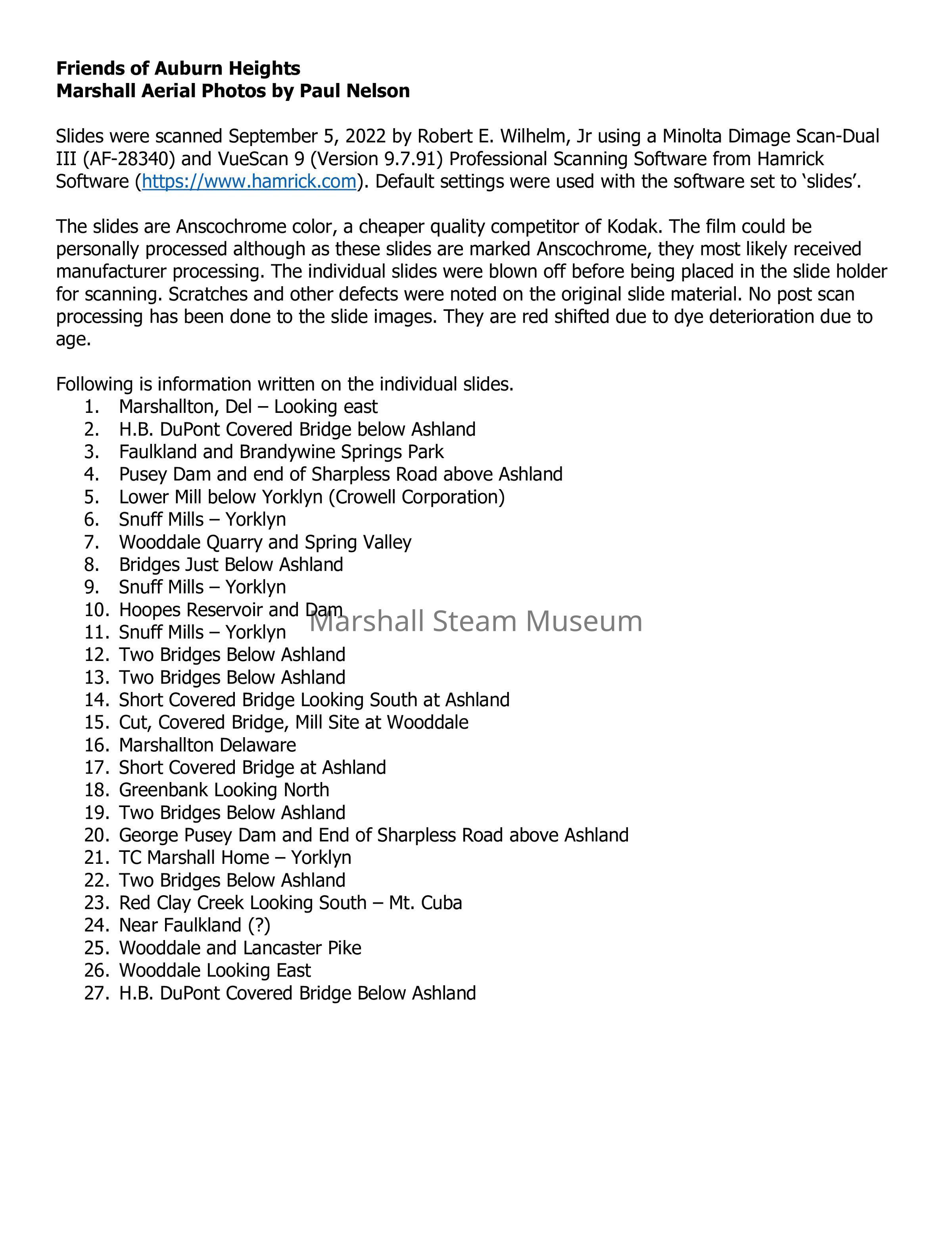 Slides were scanned September 5, 2022 by Robert E. Wilhelm, Jr using a Minolta Dimage Scan-Dual