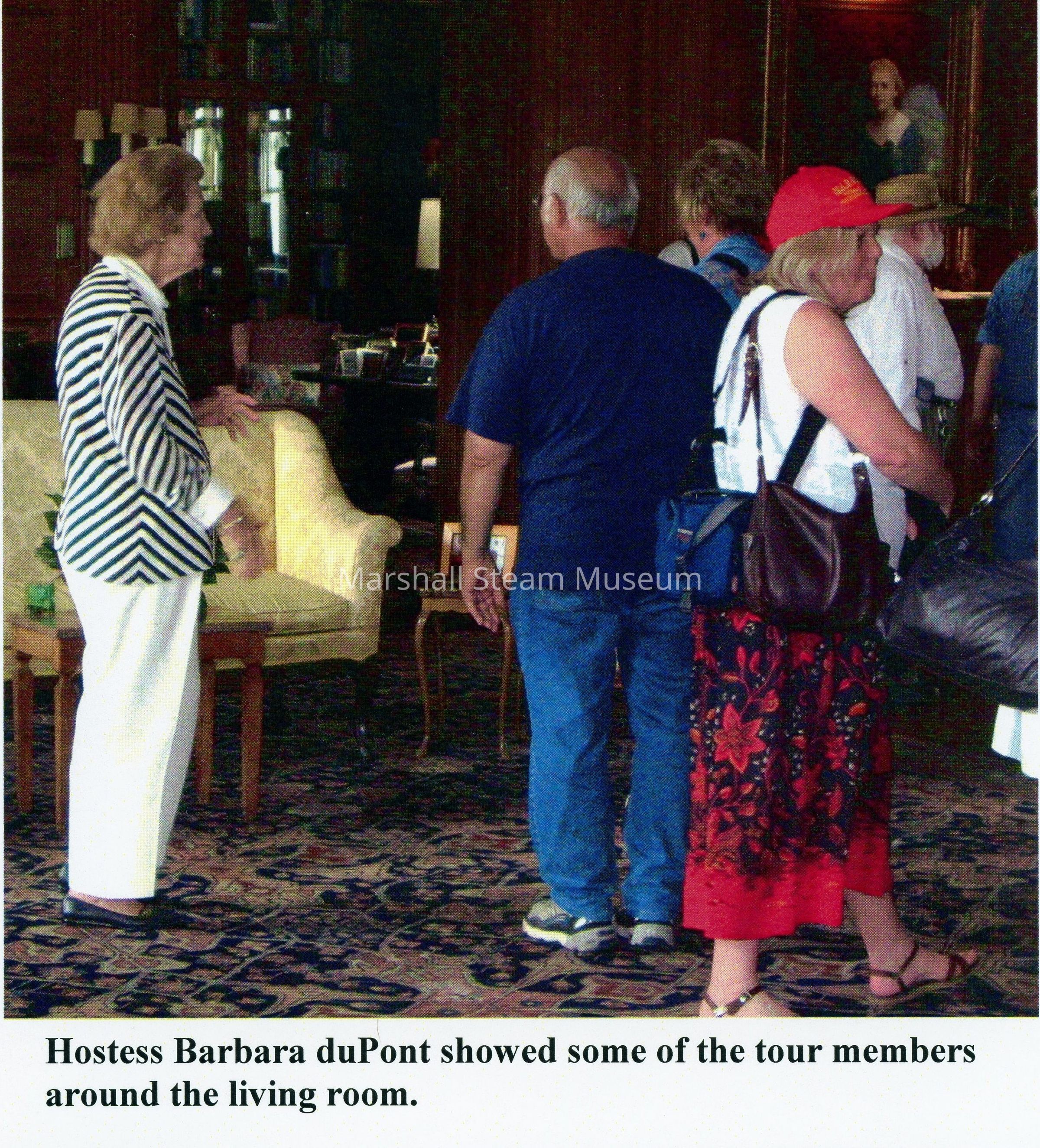 Hostess Barbara DuPont showing the mansion to Tour participantsPhotograph Details