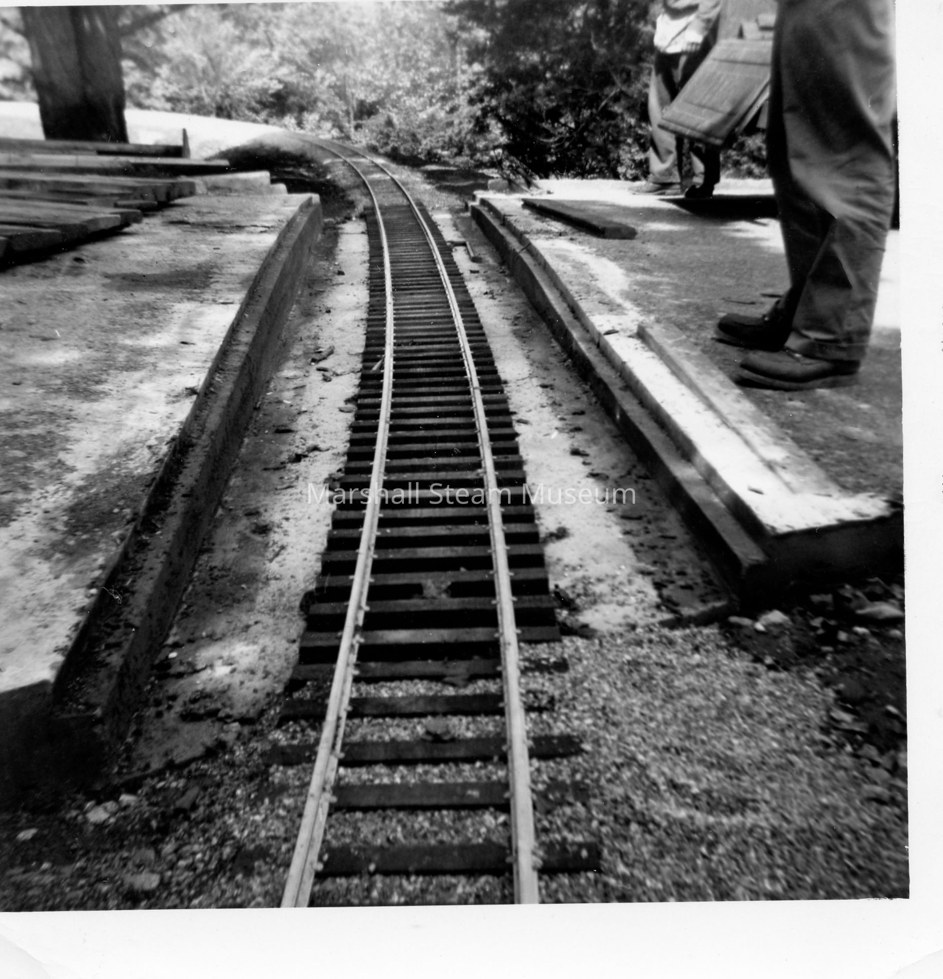 Backwriting: "The original track crossed the front driveway in a depressed concrete trough, which was soon abandoned as impractical."Photograph Details