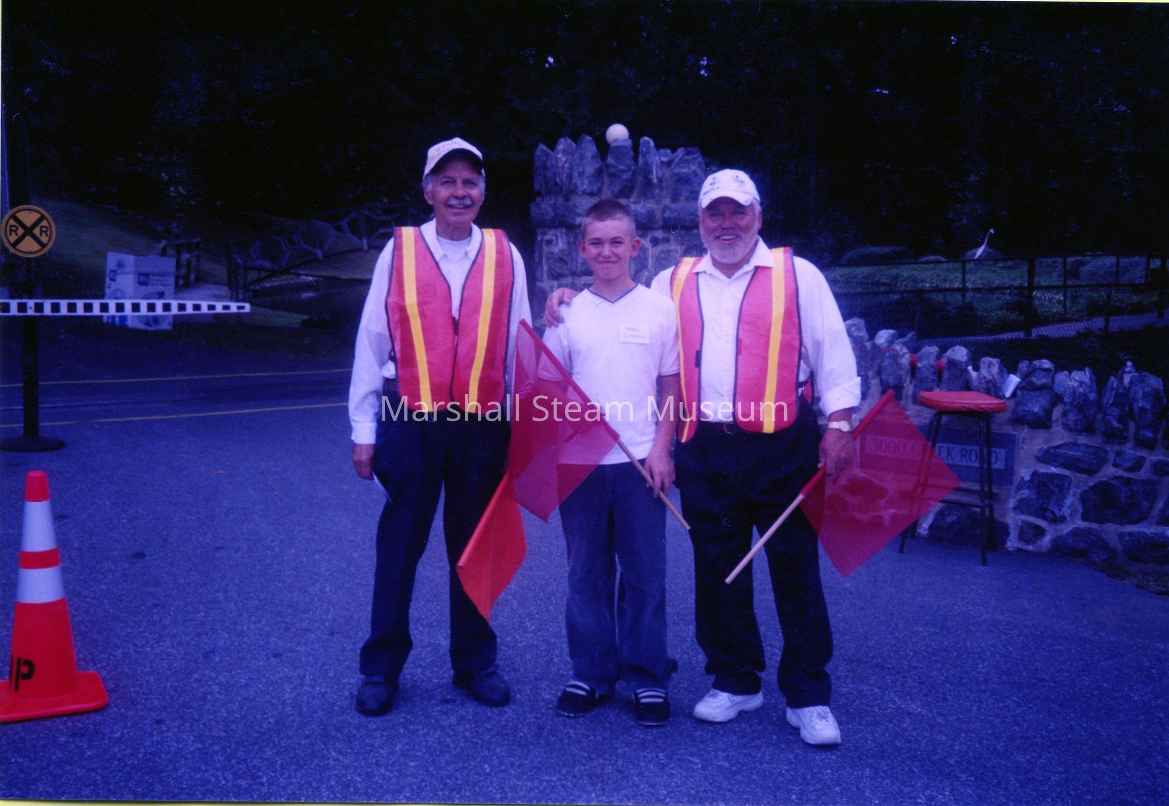 Gerhard Maute and Teddy and Dale Simpkins at the front gate at the September Steamin' DayPhotograph Details