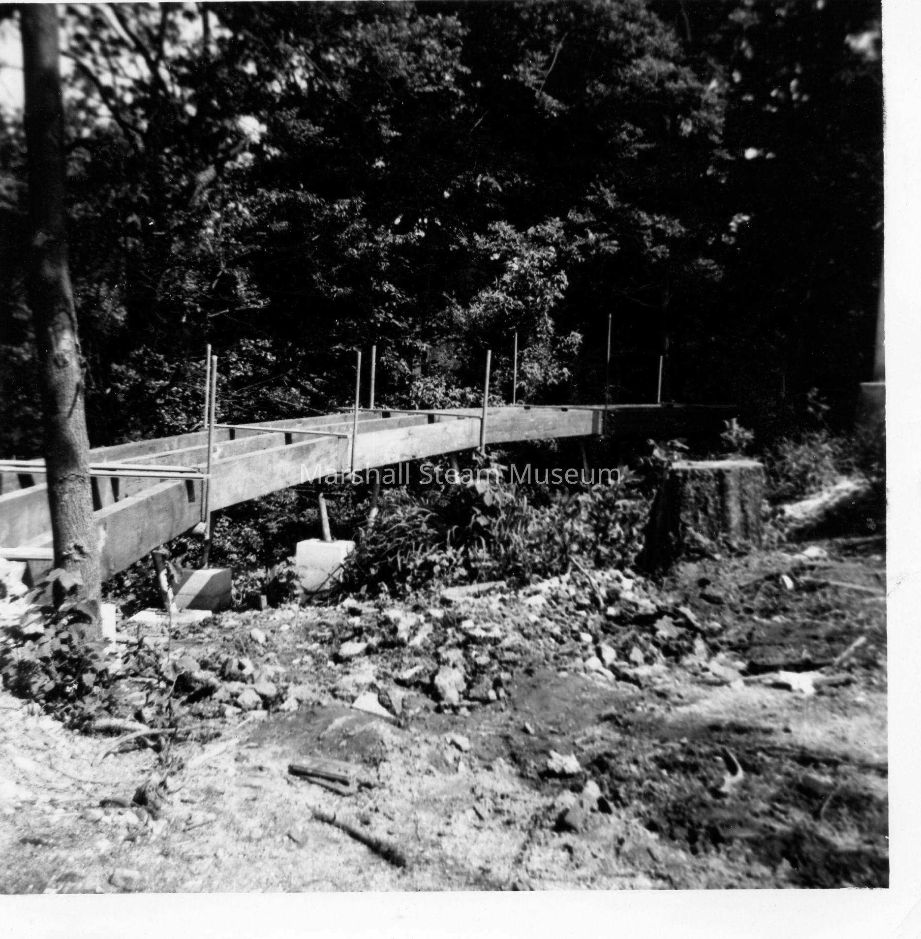 Building of the trestle over the mill race bank, 1960Entry/Object ID