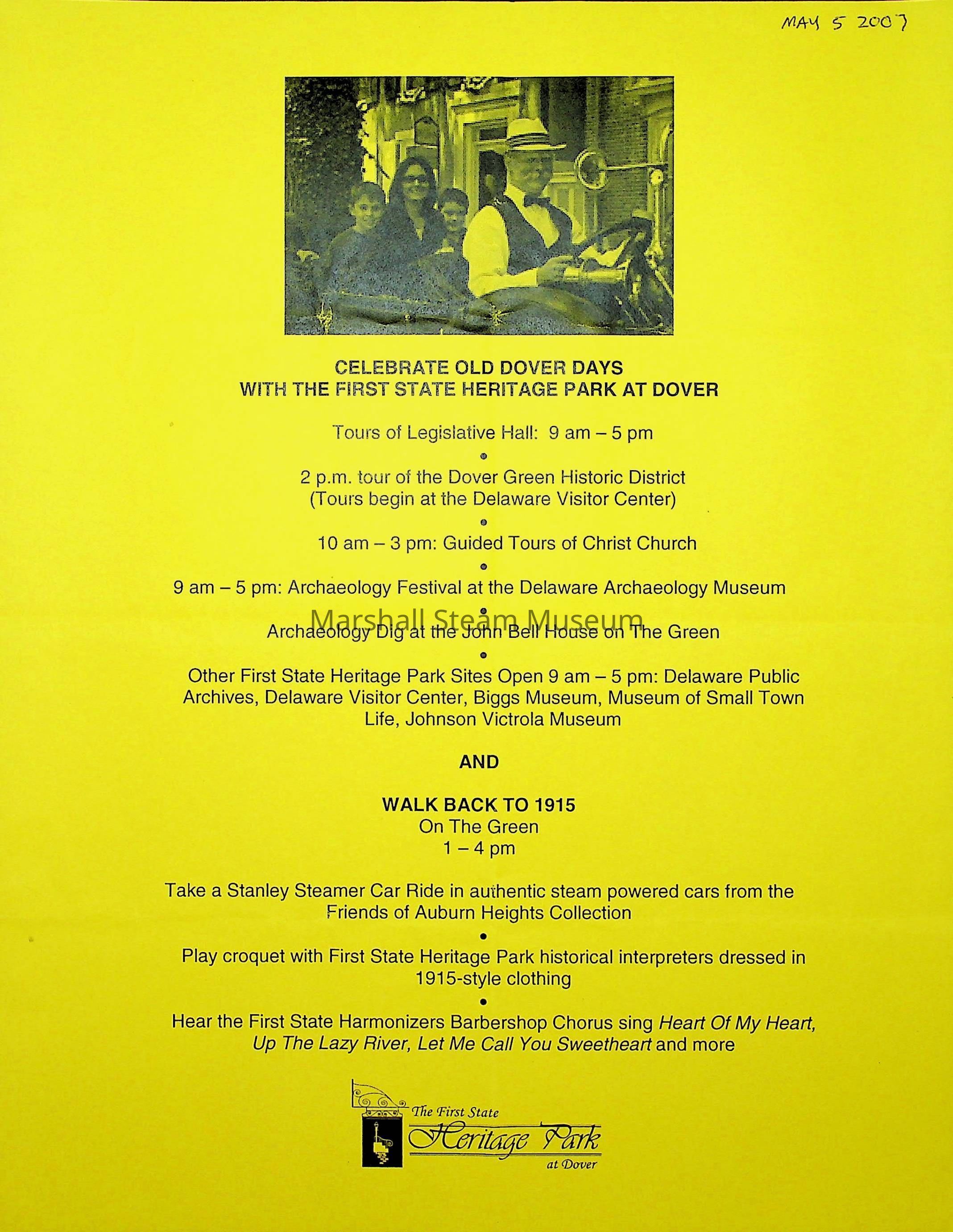 2007 - flyer for Old Dover Days with Stanley steam cars