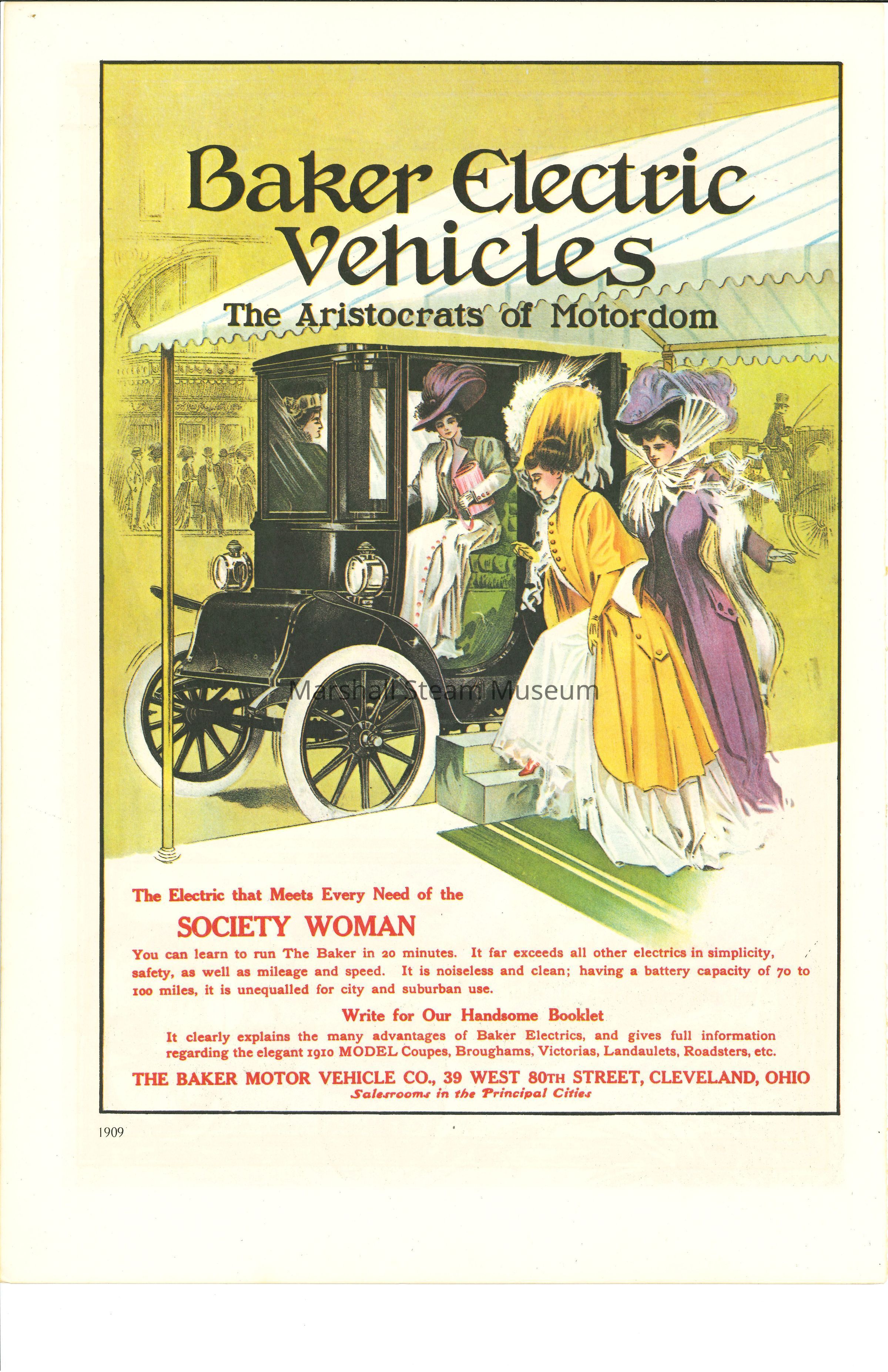 1909 advertisement for Baker Electric scanned excerpt from "The Poster Book of Antique Auto Ads" by Howard Garrett