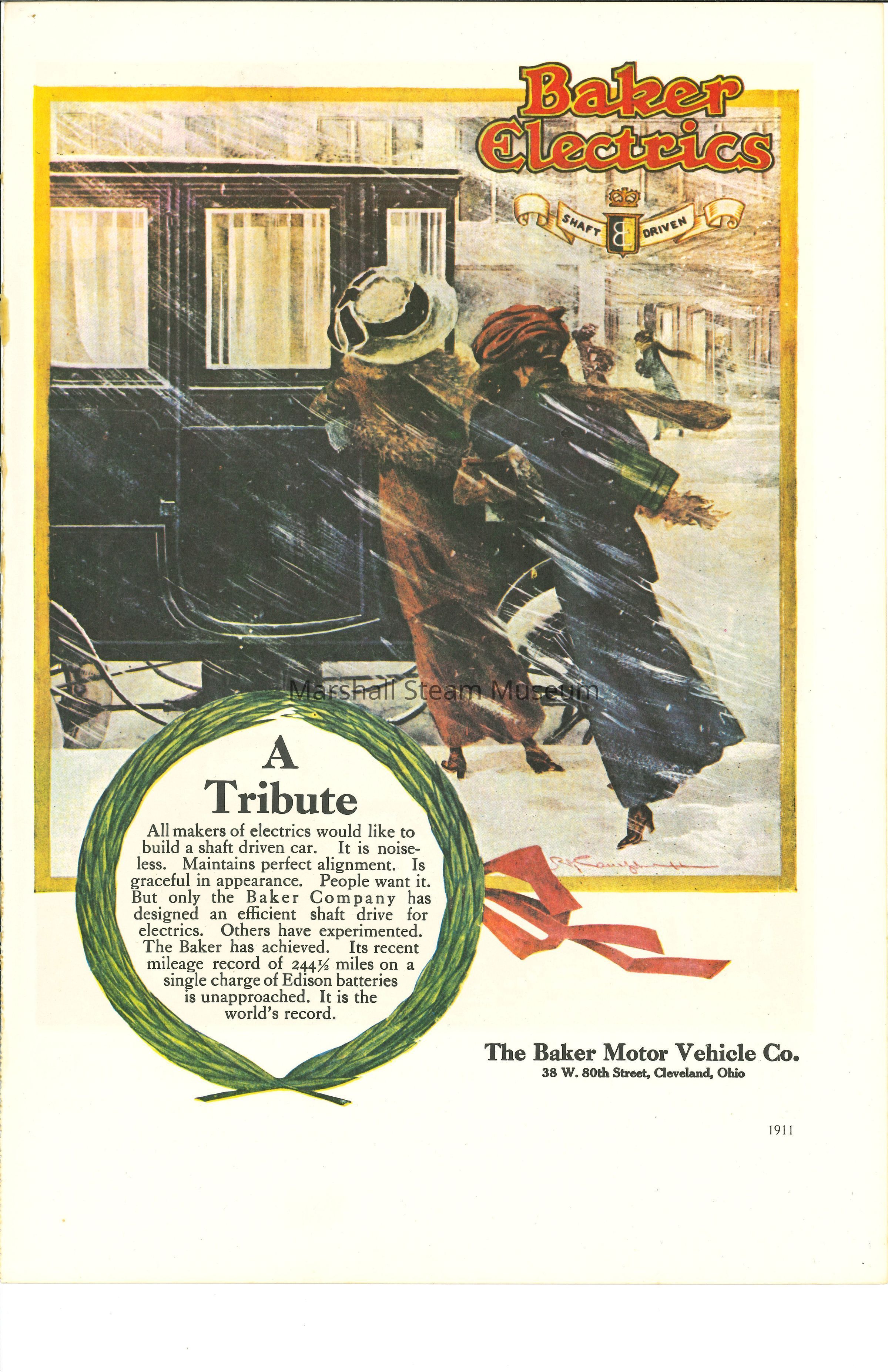 1911 advertisement for Baker Electric scanned excerpt from "The Poster Book of Antique Auto Ads" by Howard Garrett