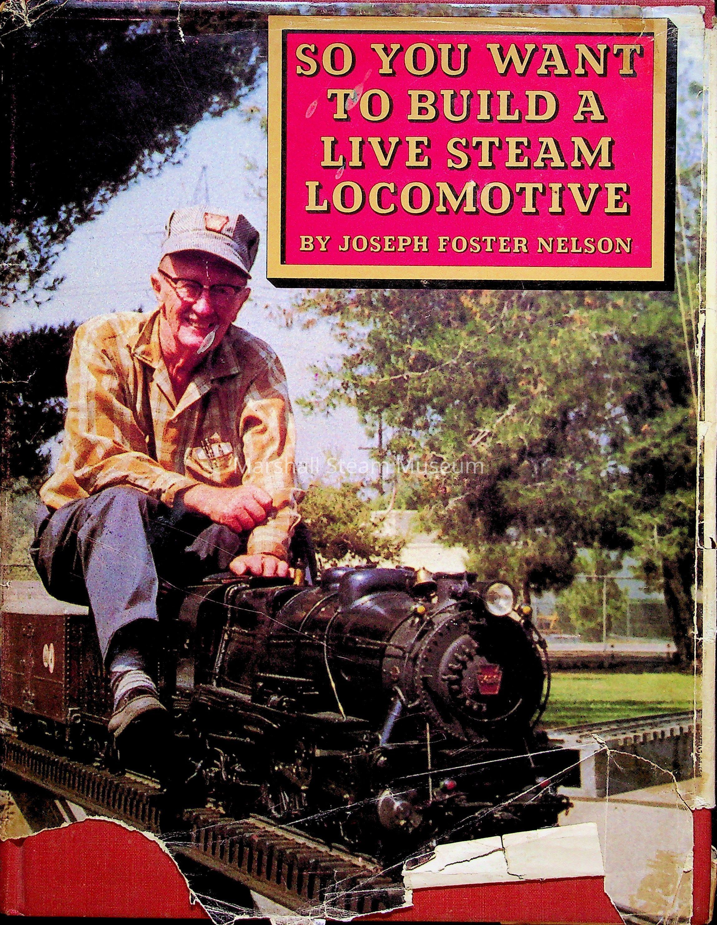 Cover of a how-to book on building a "live steam" locomotive compiled from articles published by Joseph Nelson in the 1960s and 1970s in "Live Steam Magazine." The entire book can be found in the FAH Archives.