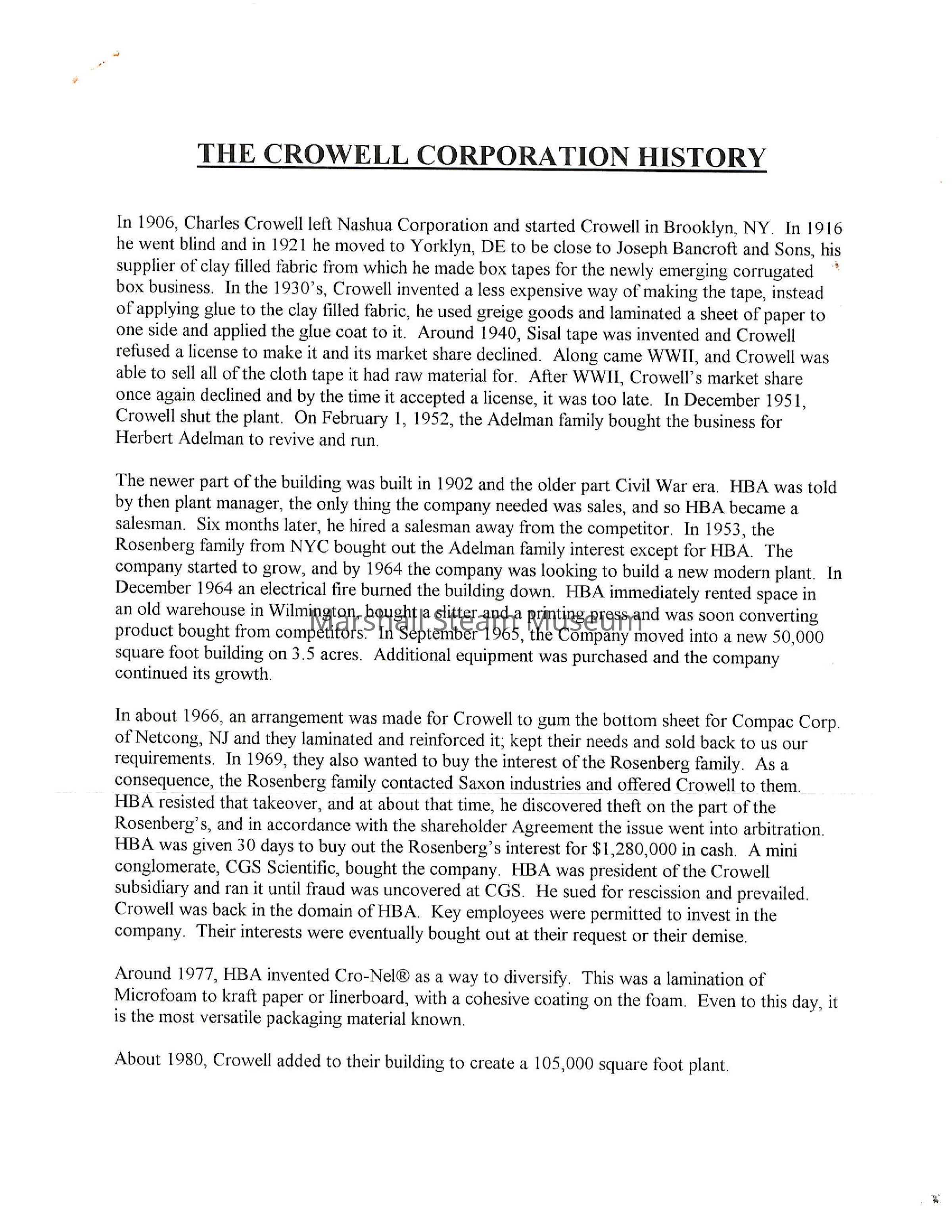 Undated history of the Crowell Tape Corporation
