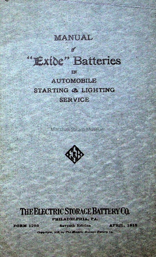 1918 Manual of Exide Batteries in Automotive Starting and Lighting Service