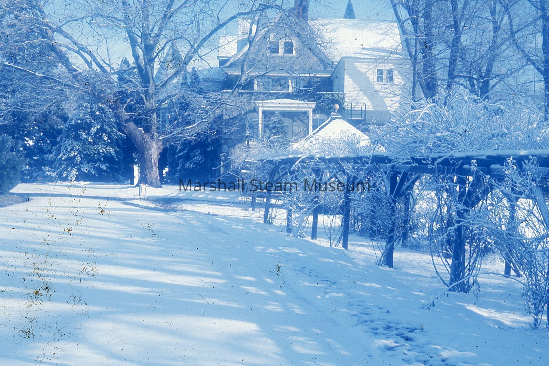The Mansion and rose trellis after snowfall around Christmas 1975Photograph Details