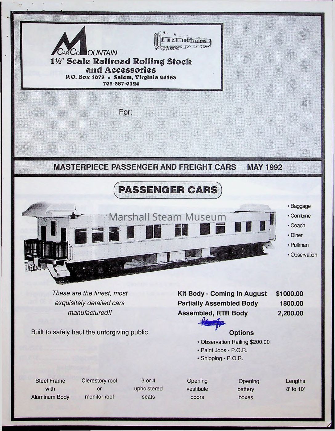 1992 catalog of passenger cars from Mountain Car Company