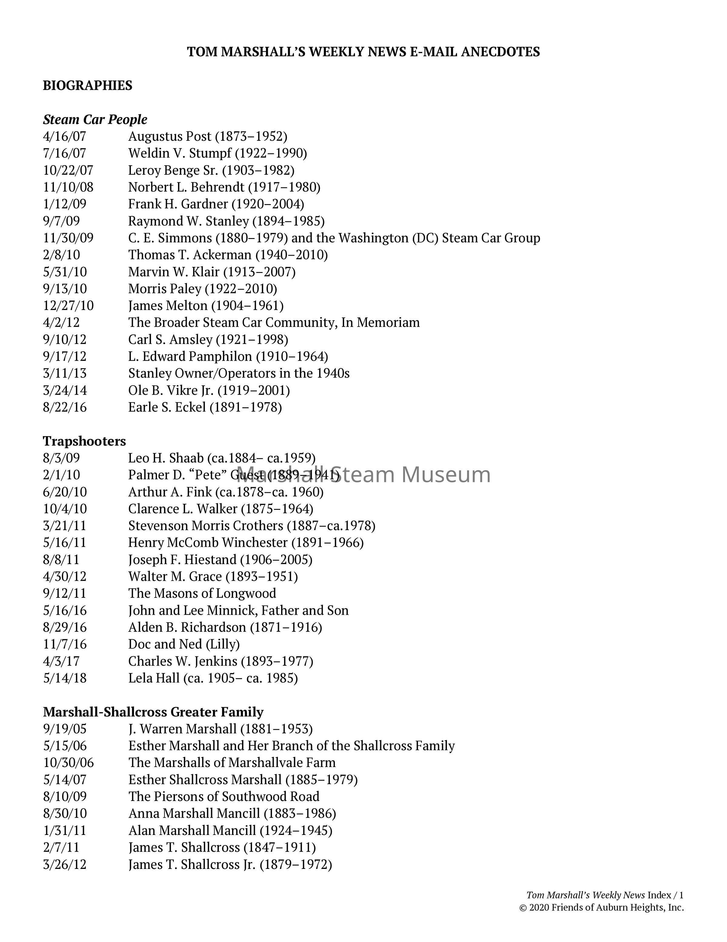 4/2/12 The Broader Steam Car Community, In Memoriam