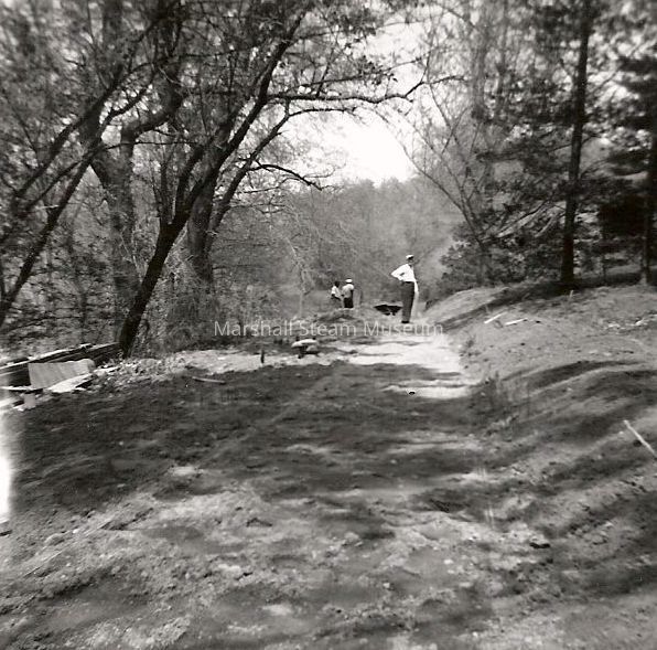 Clarence Marshall inspecting the roadbed behind the present snack bar, 1960Photograph Details