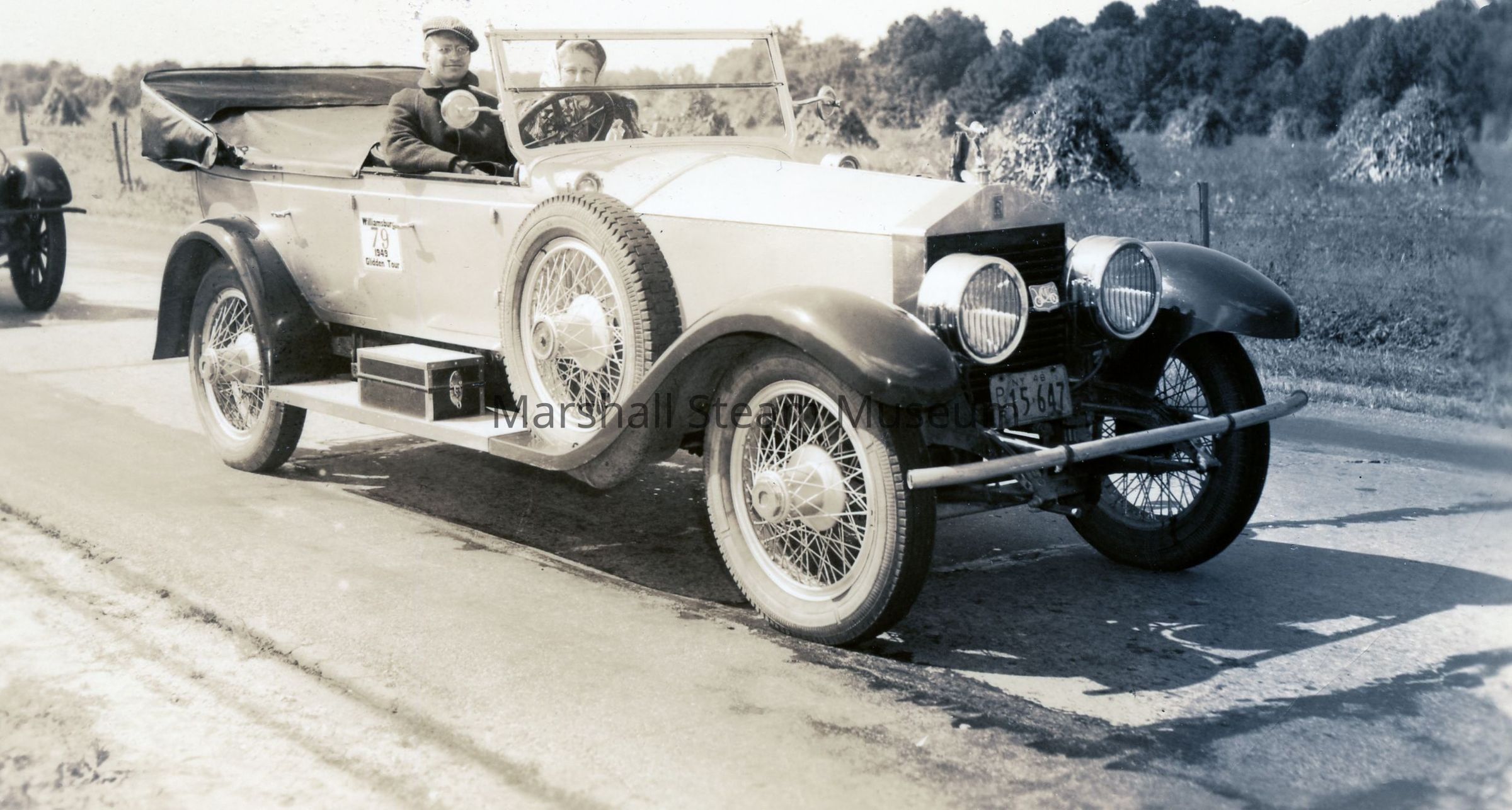 1949 Glidden Tour - Charles Sawyer and passenger in a 1923 Rolls RoyceEntry/Object ID