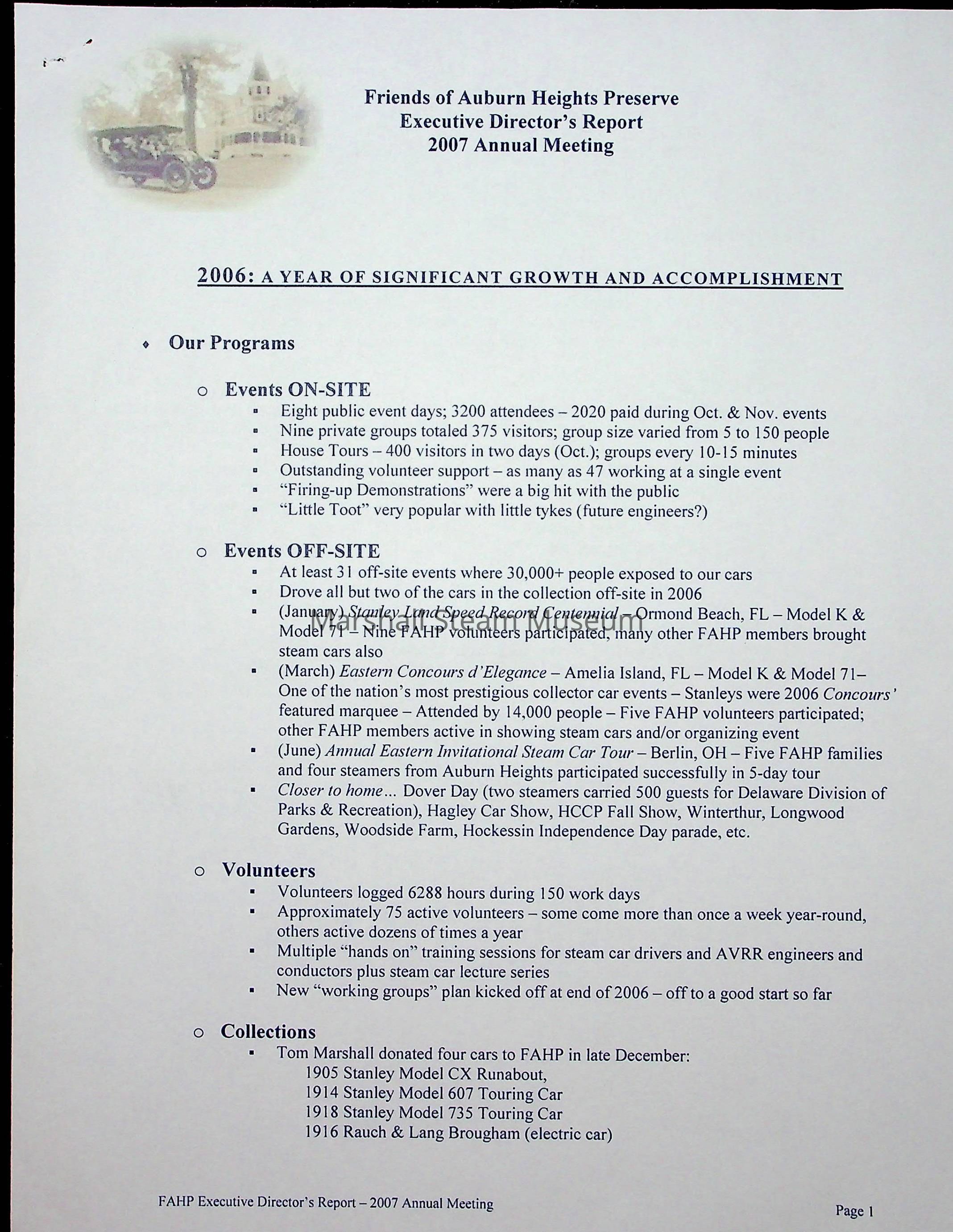 Report provided at the Annual Meeting with 2006 accomplishments and 2007 plans
