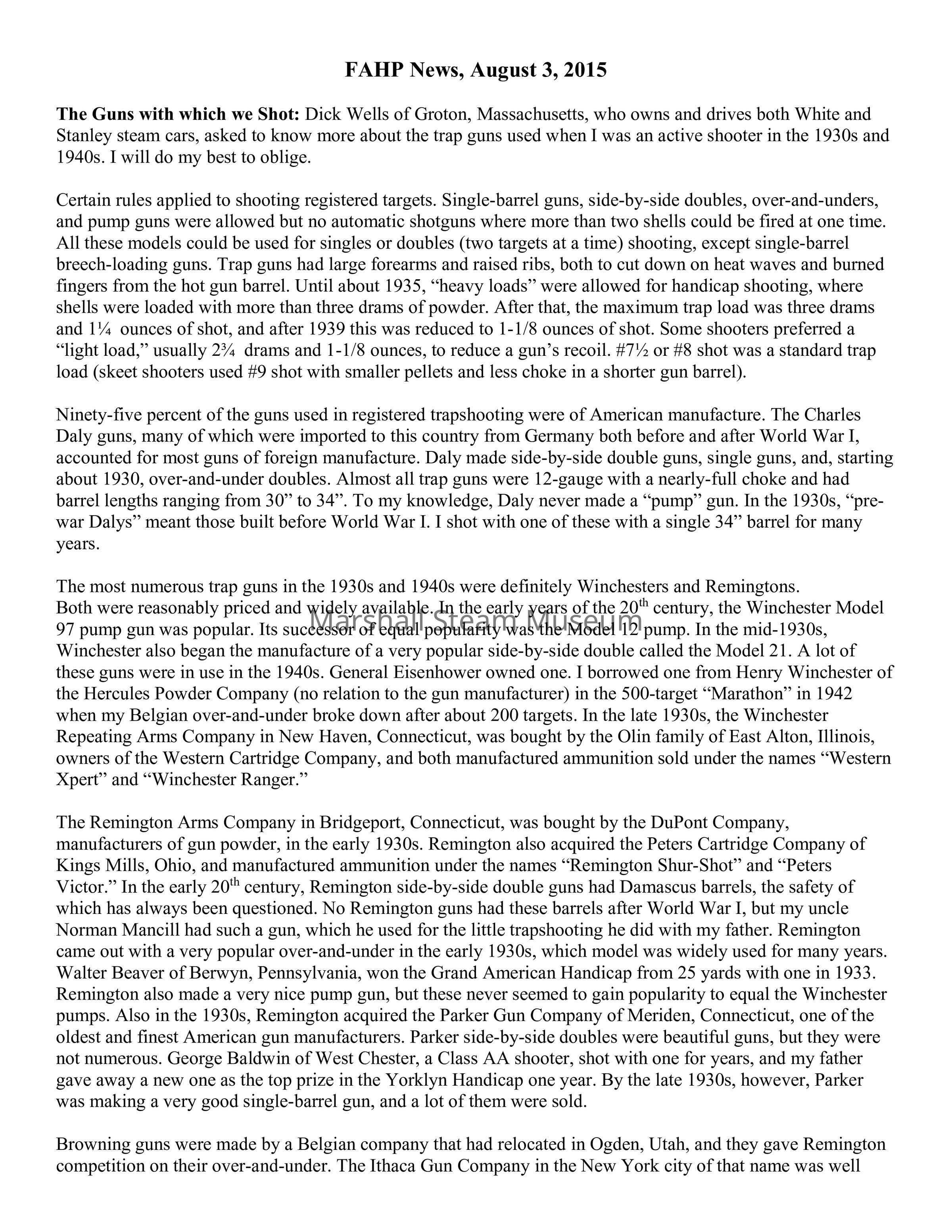 The Guns with which we Shot: Dick Wells of Groton, Massachusetts, who owns and drives both White and Stanley steam cars, asked to know more about the trap guns used when I was an active shooter in the 1930s and 1940s. I will do my best to oblige.