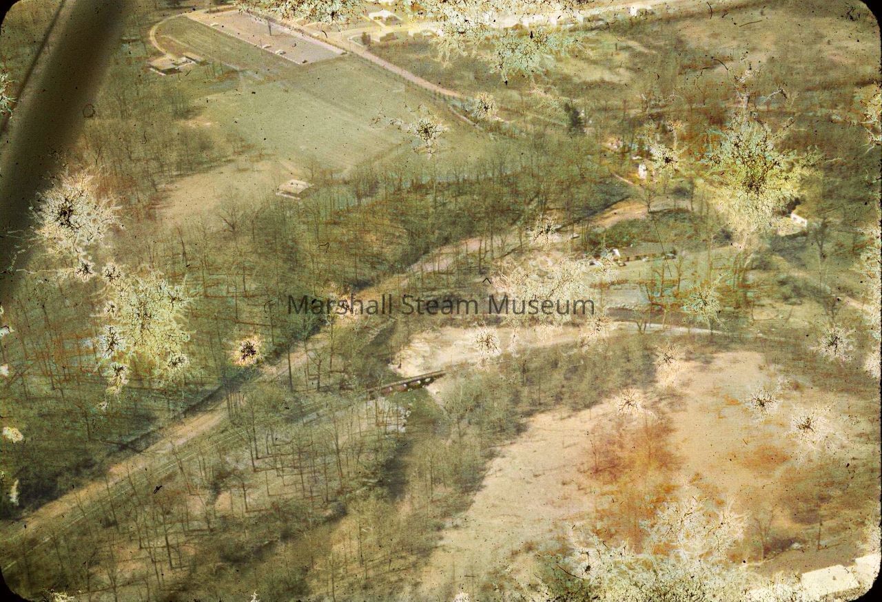 In 1951 the State of Delaware bought the land and in 1956 Brandywine Springs State Park became the first state park in DE. In 1970 the park, not meeting new state park guidelines as a ‘destination location’ was transferred to New Castle County for a county park. The wide gap appearing to be a road running parallel to the creek and railroad tracks is the former route of the Peoples Railway trolley to Wilmington. The trolly made a U-turn just before Faulkland Road and the ‘high trestle bridge’ crossed both the creek and railroad parallel to the right edge of the image with the trolley route continuing to the bottom of the image to Wilmington (track path barely visible).Photograph Details