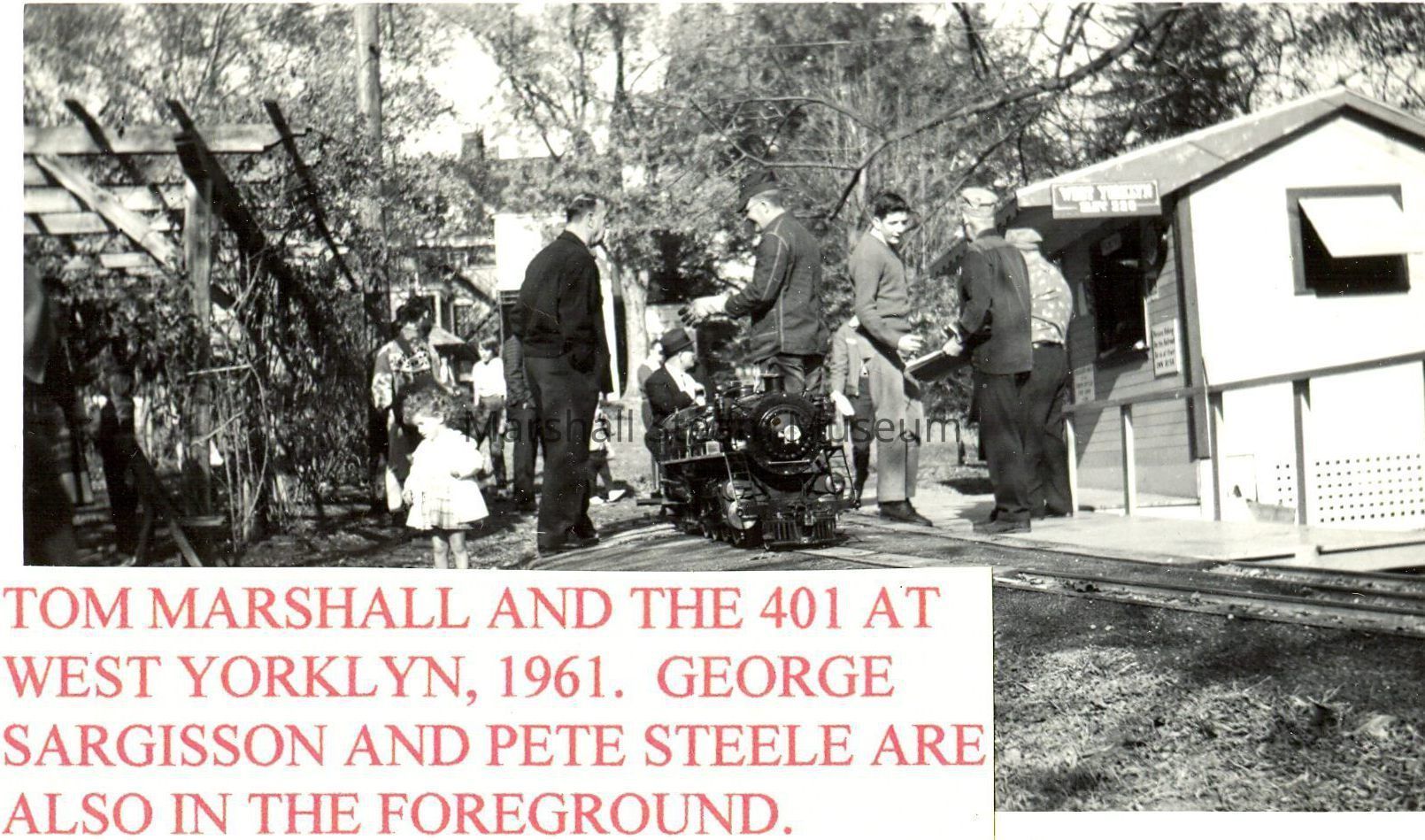Thomas C Marshall, Jr, George Sargisson and Pete Steele with the 401 at West Yorklyn Station, 1961Photograph Details