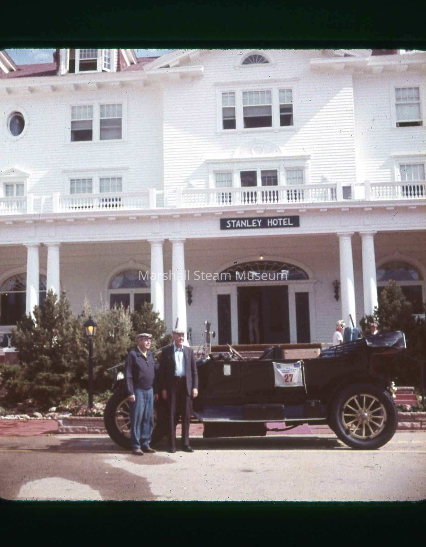 Weldin Stumpf and Thomas C Marshall, Jr, at the Stanley Hotel in Estes Park, CO with the 1912 Stanley Model 87Collection