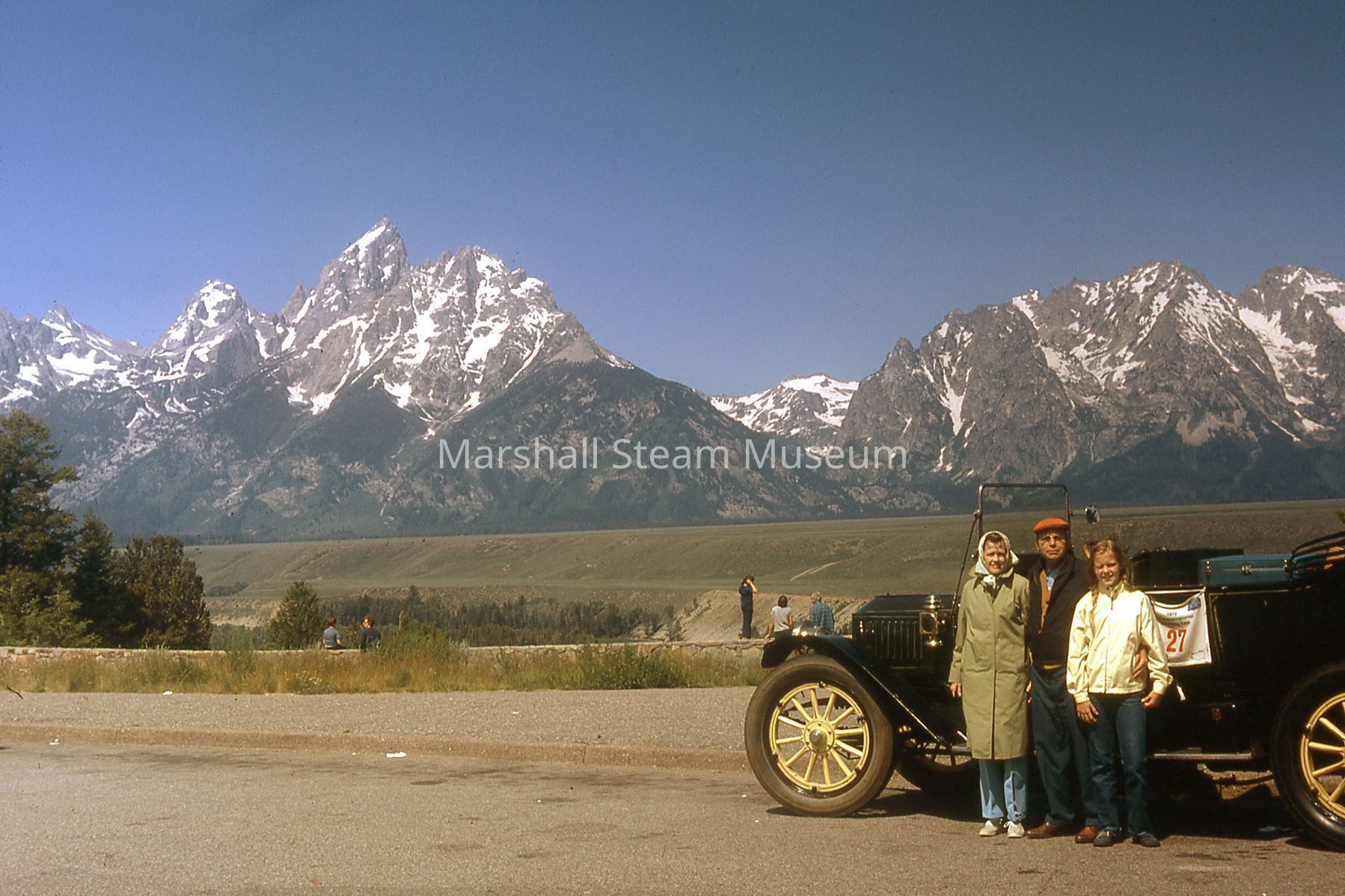 1972 Transcontinental Tour - 1912 Stanley Model 87 and Stumpf family near Grand Teton MountainsEntry/Object ID