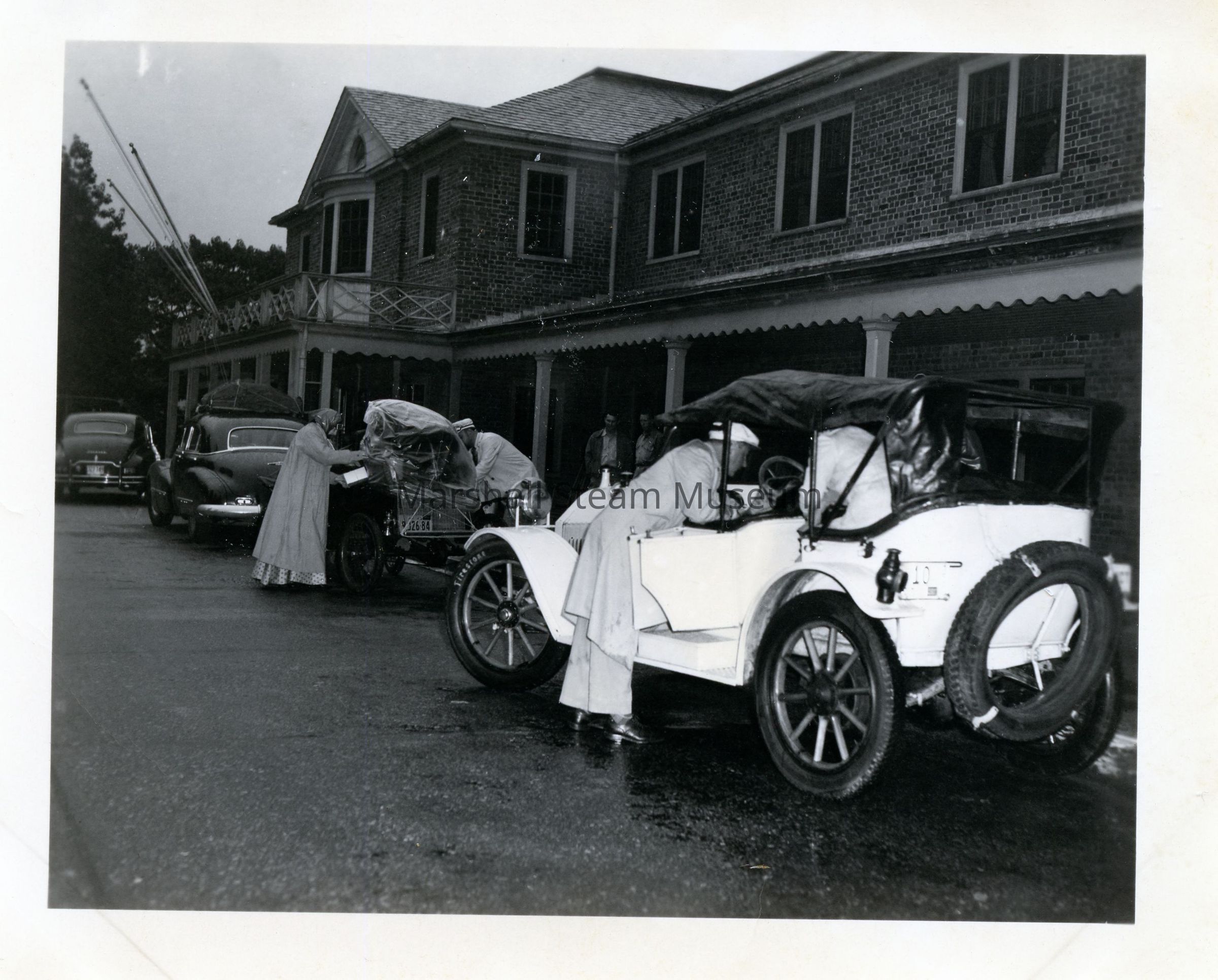 1949 Glidden Tour - tour cars preparing to leave Williamsburg, VA, in the rainEntry/Object ID
