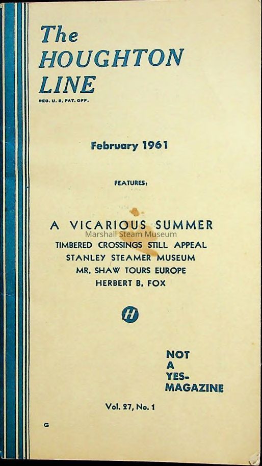 Clipping on the Marshall Steam Museum "The Houghton Line Magazine", 1961Entry/Object ID