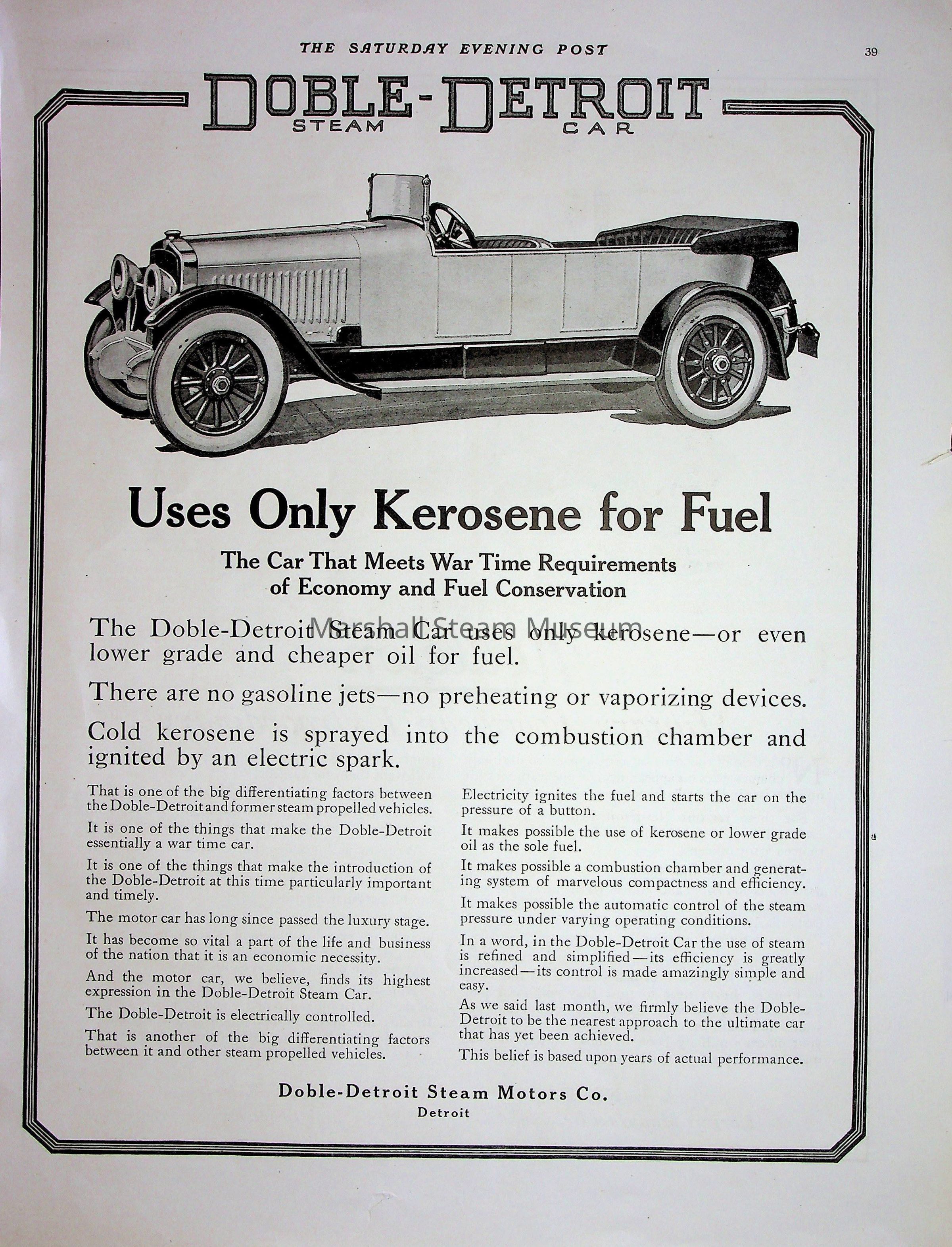 1917 advertisement for the Doble-Detroit in "The Saturday Evening Post"