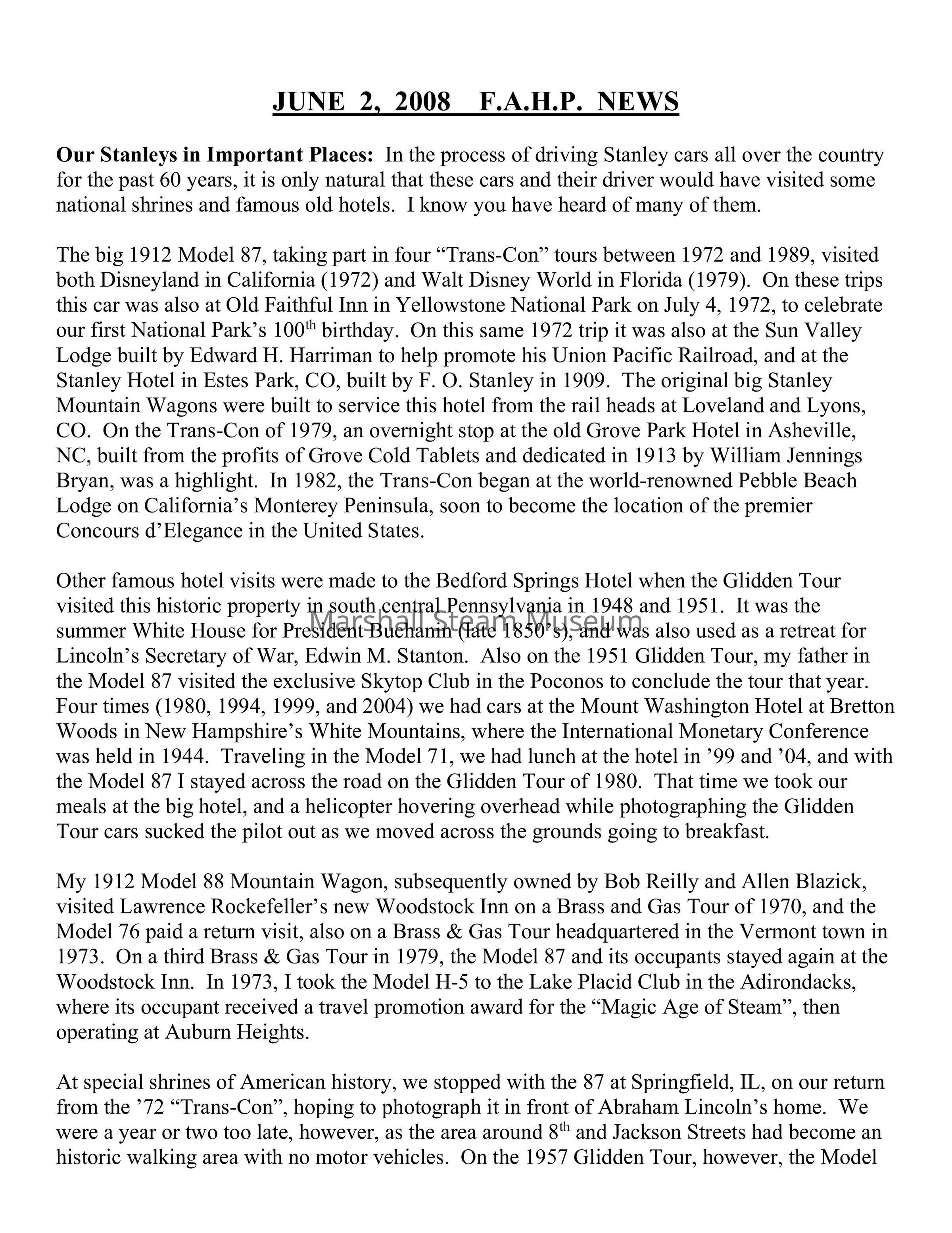 Our Stanleys in Important Places: In the process of driving Stanley cars all over the country for the past 60 years, it is only natural that these cars and their driver would have visited some national shrines and famous old hotels. I know you have heard of many of them.