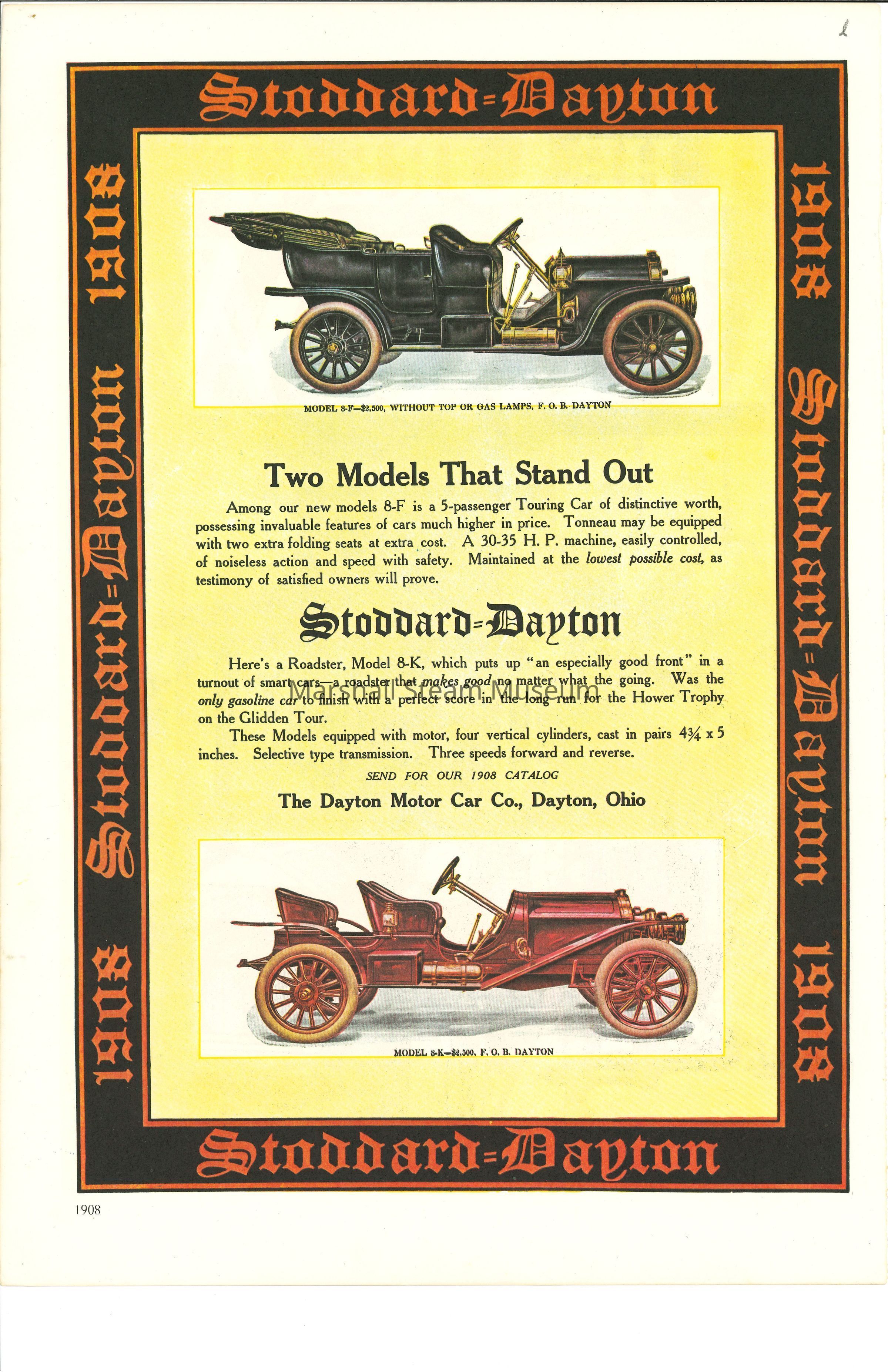1908 advertisement for Stoddard-DaytonEntry/Object ID