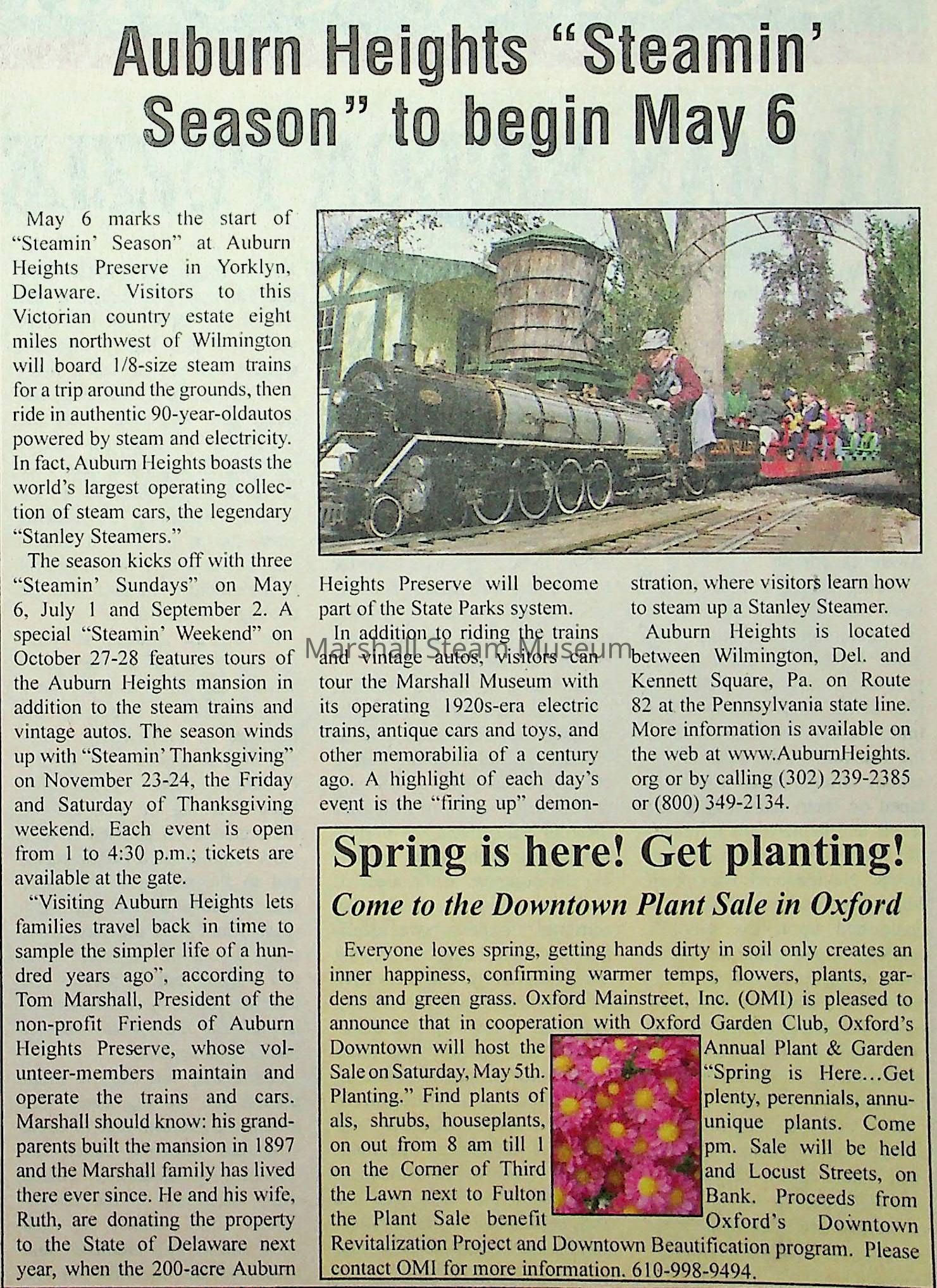 Article from the Chester County Press covering the Steamin' Day season schedule