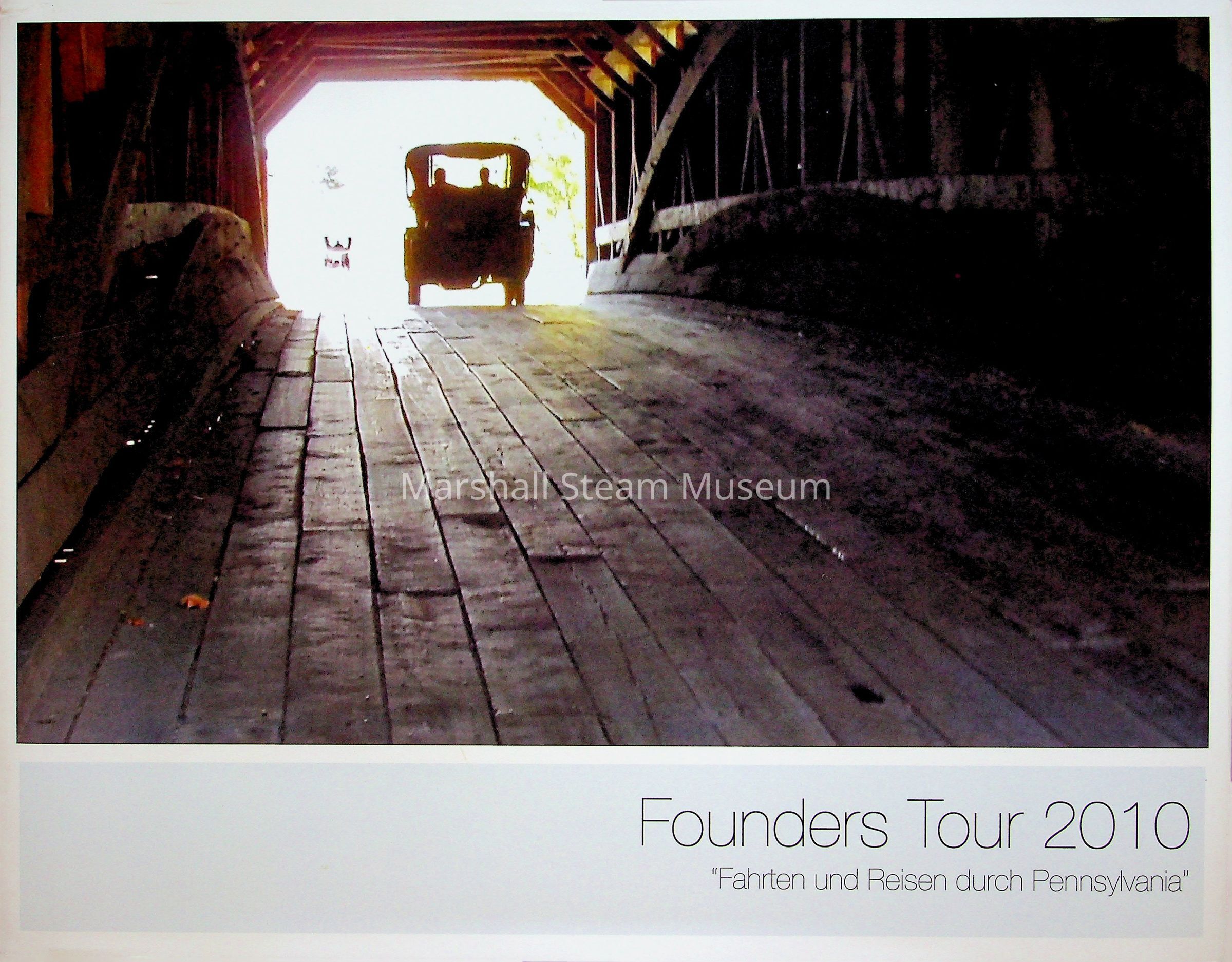 Tour book of the 2010 Friends of Ancient Road Transportation Founders Tour of southeast PA and northern DE. The tour book was given as a gift to the Museum for allowing this tour to stop at the Museum on their route. Marshall cars did not participate.