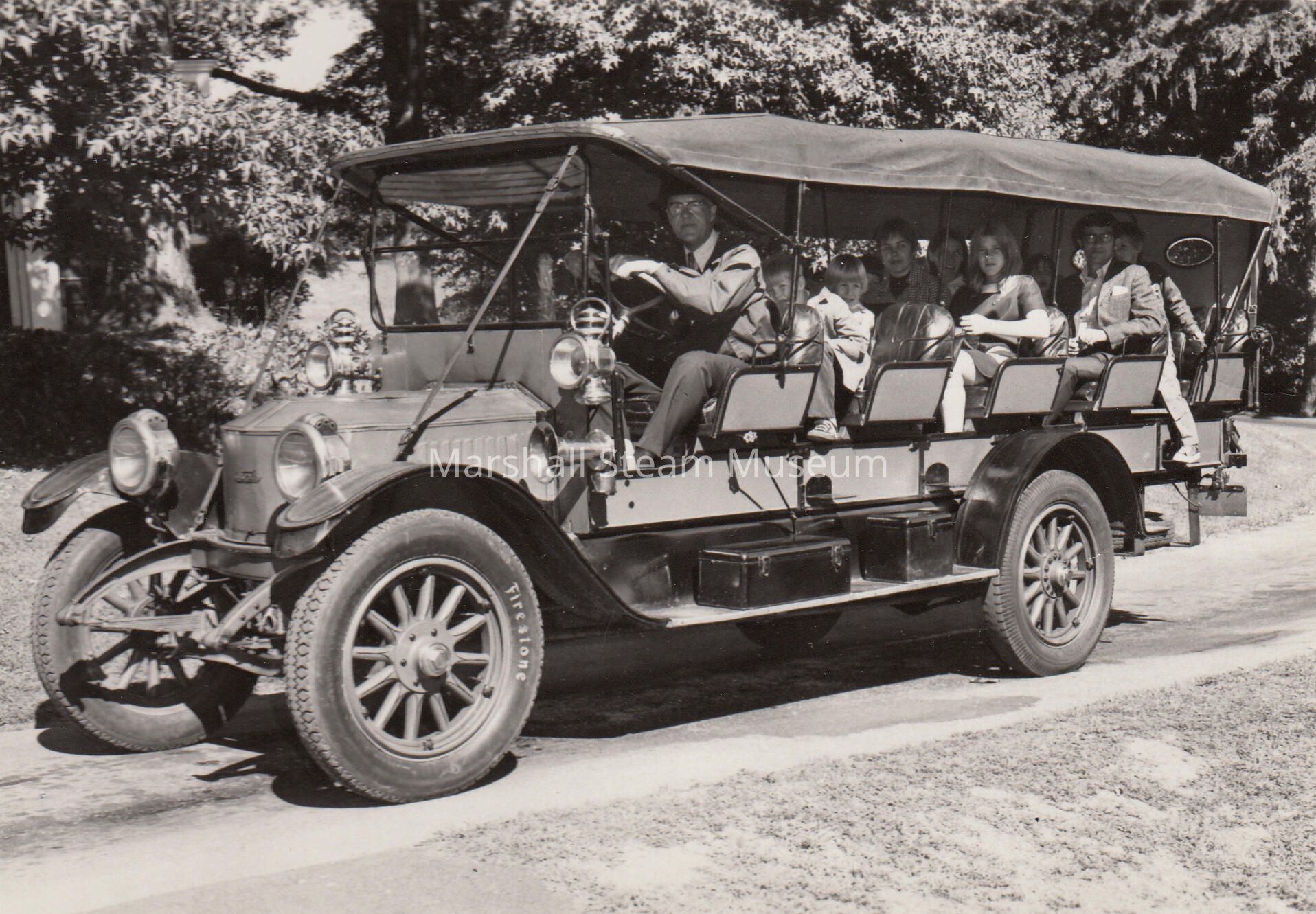 Thomas C Marshall, Jr driving the 1915 Stanley Model 820 Mountain Wagon full of passengers at the Magic Age of Steam, about 1973Entry/Object ID