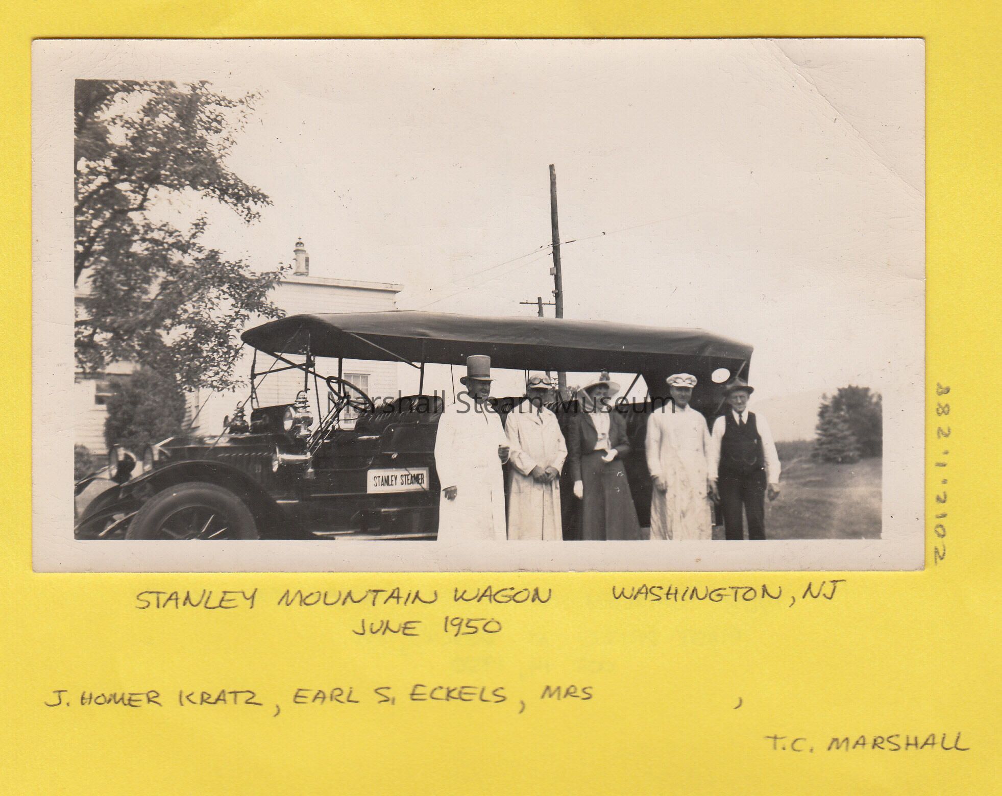 Photo caption: "Stanley Mountain Wagon Washington, NJ June 1950. J. Homer Kratz, Earl S. Eckel, Mrs.-------, T.C. Marshall"Photograph Details