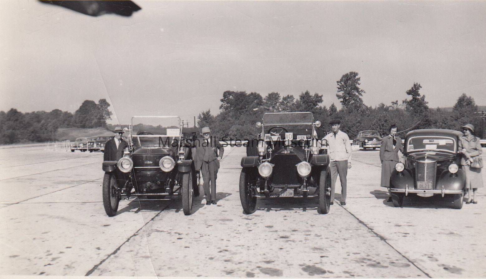 Three cars and drivers in the 1951 Glidden Tour with Clarence Marshall second from the left joined possibly by Homer Kratz on the far leftPhotograph Details