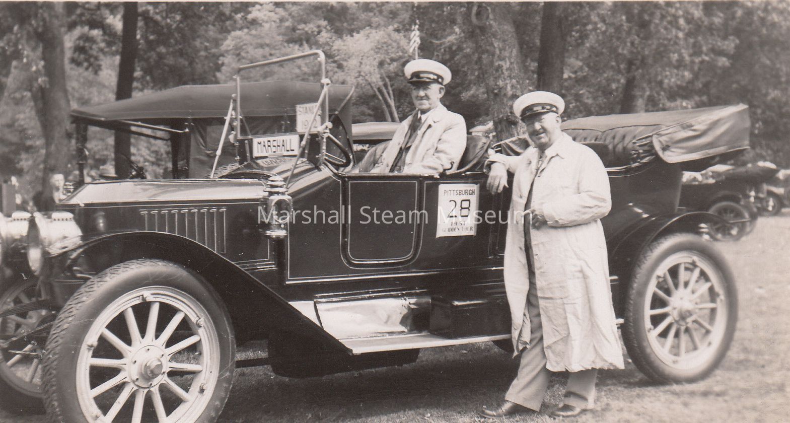 1951 Glidden Tour - T Clarence Marshall and J Homer Kratz and the 1912 Stanley Touring Model 87 at Bedford Springs, PA, 1951Entry/Object ID