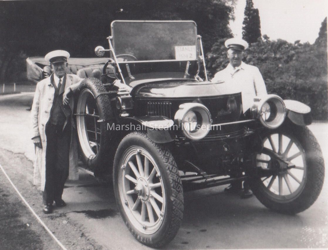 T Clarence Marshall (left) and Homer Kratz (right) with the 1912 Stanley Touring Model 87Photograph Details
