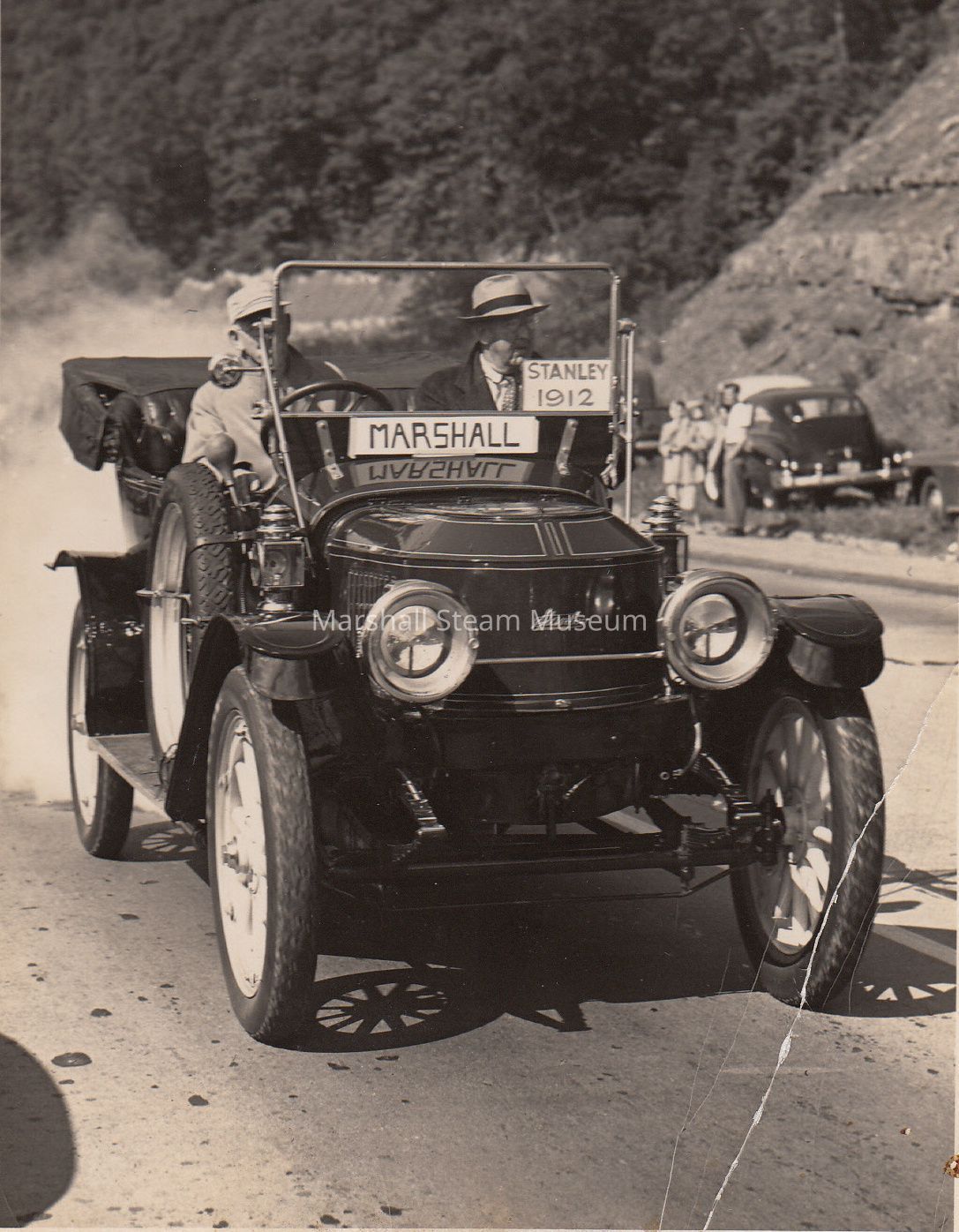 1951 Glidden Tour - T Clarence Marshall and Homer Kratz in 1912 Stanley Touring Model 87 on National Road (Route 40) in Cumberland, MD, 1951Entry/Object ID
