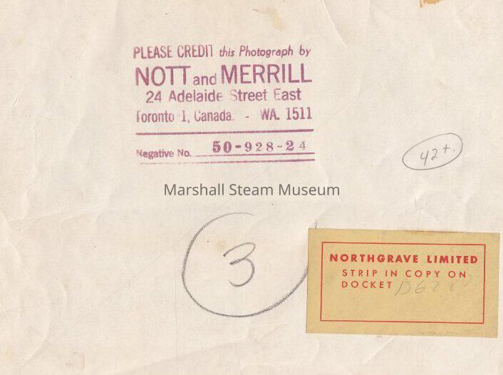 Tom Marshall works on the pilot of the Model 78 as his passenger, Jack Hutton, looks on. This photo was taken between Montreal and Cornwall, Ontario.Photograph Details
