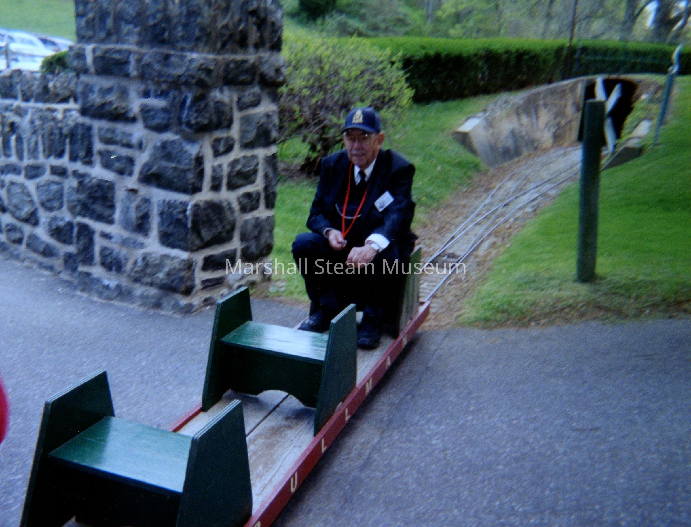 Art Wallace, conductor, on a steam train coming out of the tunnel