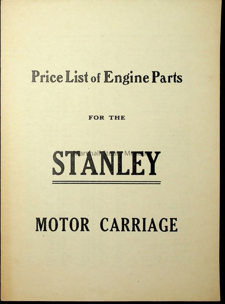Price List of Engine Parts for the Stanley Motor Carriage - Engines #1, 2 and 3