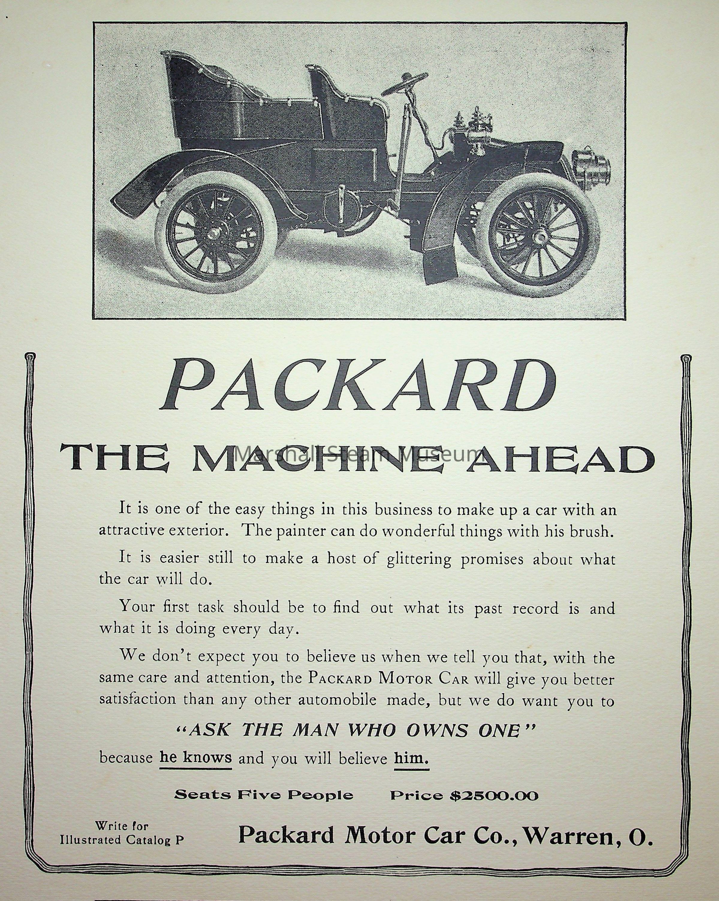 Reproduction of an advertisement for Packard Motor Company published in the April 1903 issue of "The Saturday Evening Post"