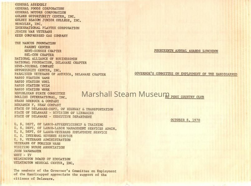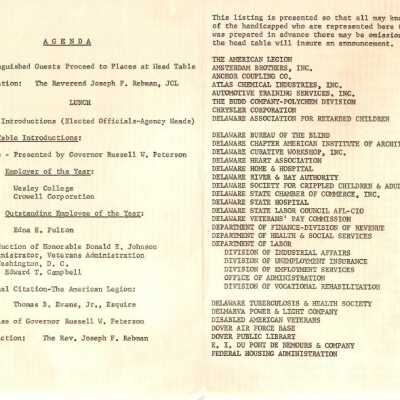 Agenda from the Governor's Committee of Employment Award luncheon at the DuPont Country Club, October 1970Collection